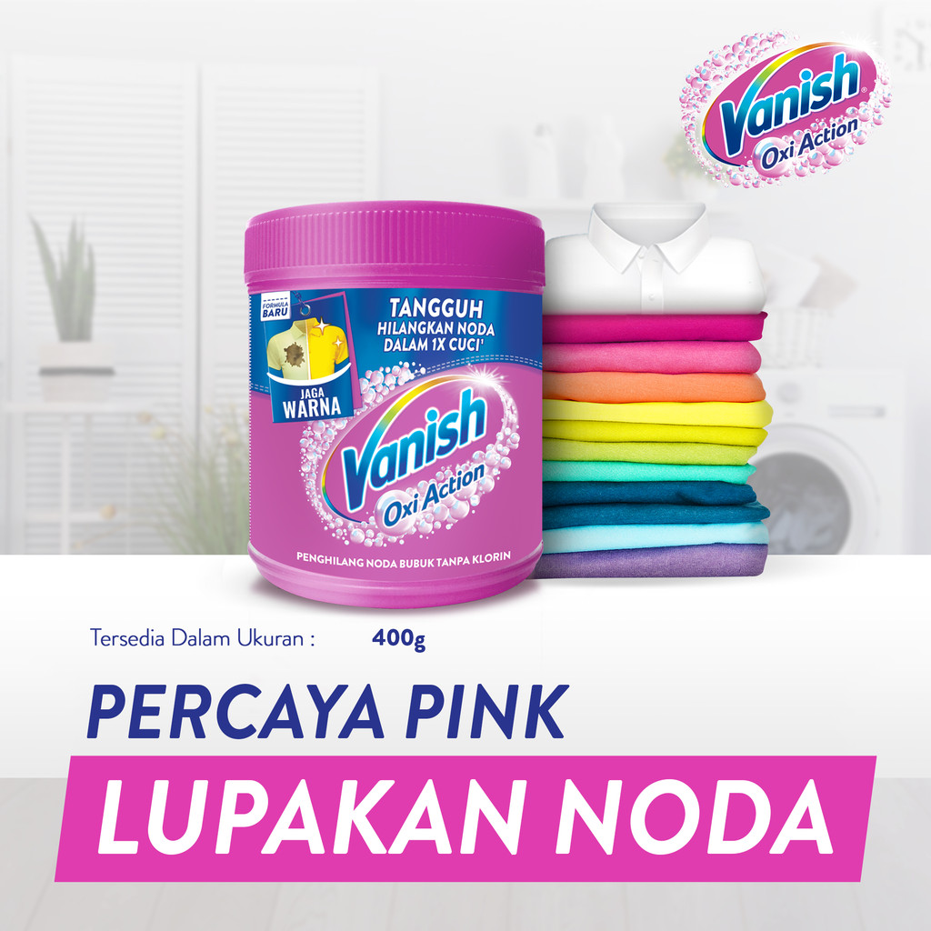 Vanish Bubuk Pembersih Noda Baju Membandel 400gr (3 pcs) Tube - Gratis Harpic Power Plus Original 200ml & Sikat Toilet