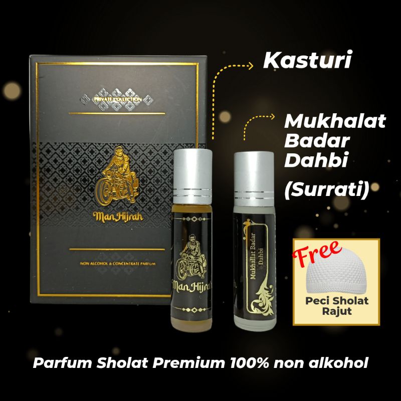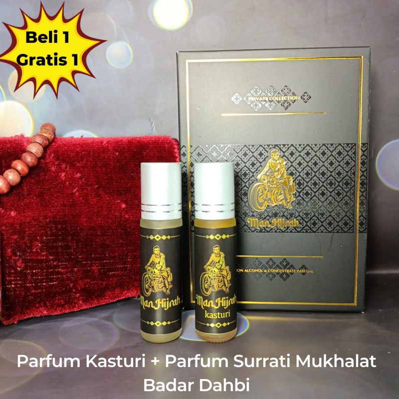 [Beli 1 Gratis 1] Minyak Kasturi 9 ml Free Parfum Sholat Surrati Mukhalat Badar Dahbi 9 ml (Non Alkohol)