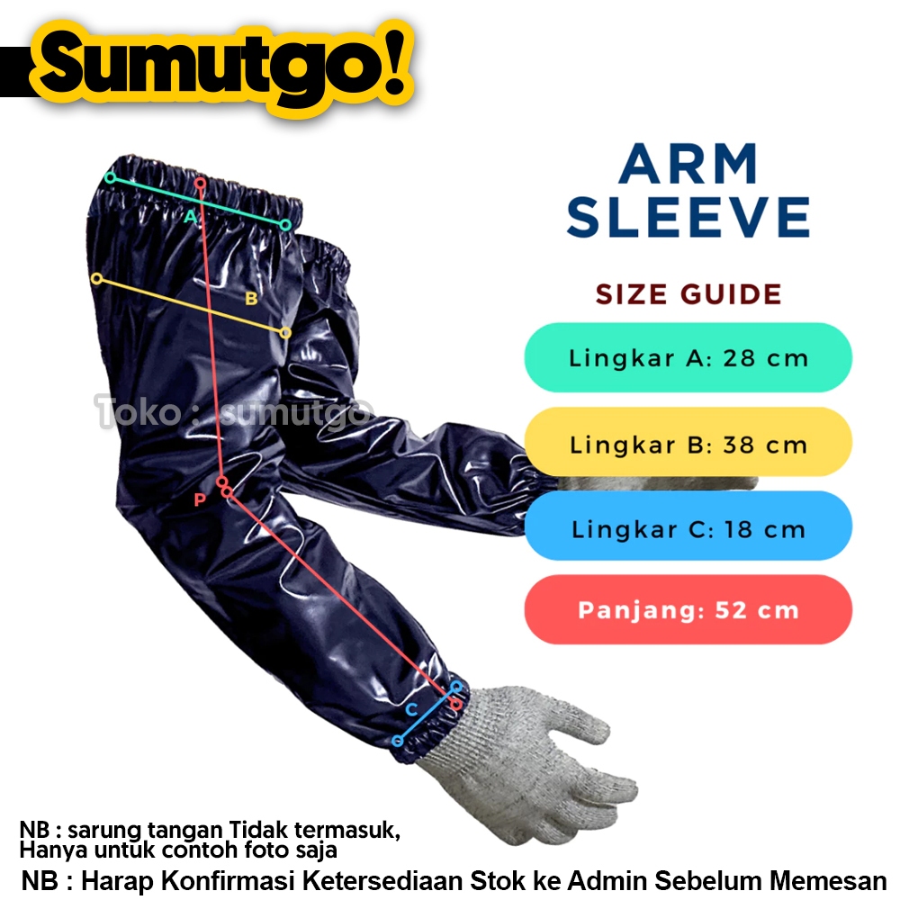 Sarung Lengan Handsock Manset Panjang Bahan Karet PVC Serbaguna 52 cm Anti Air Minyak Bahan Kimia / Arm Sleeve Cover