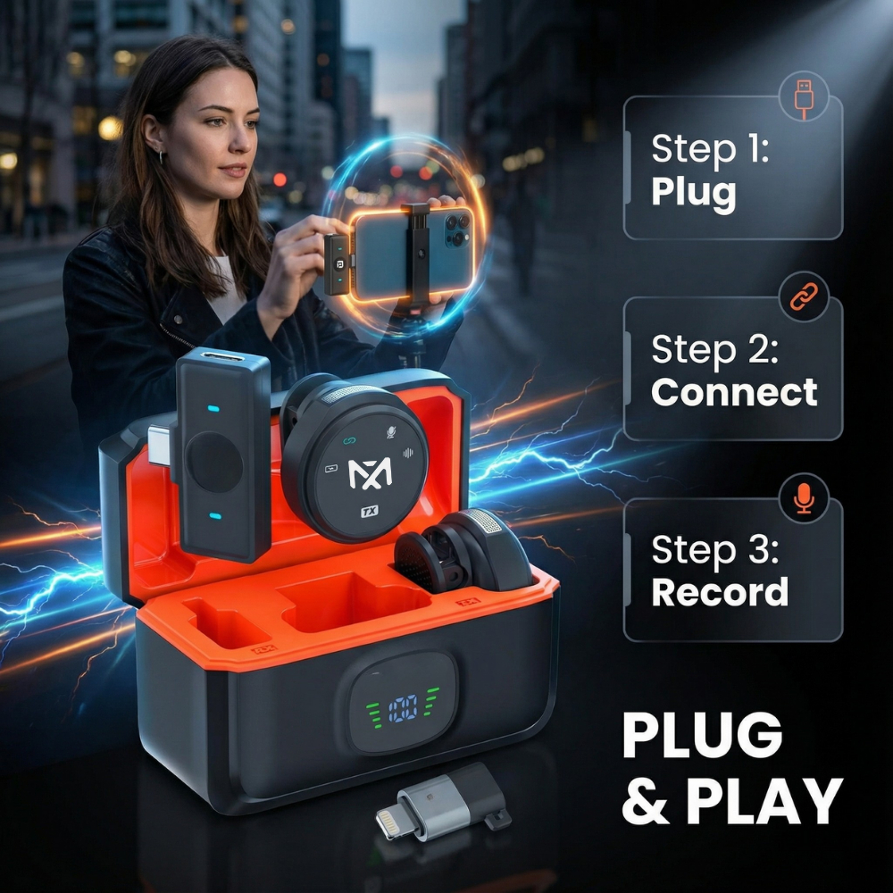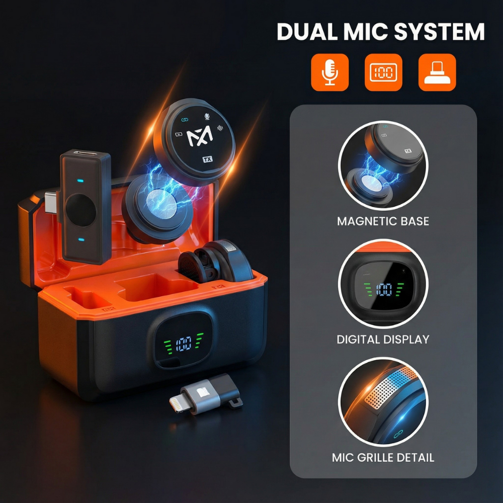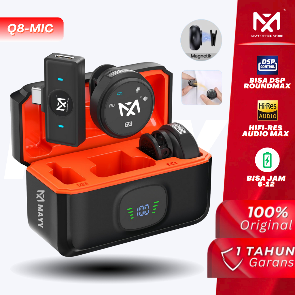 Mayy official id Magnetic 2Mic Wireless Clip on Microphone Mikrofon Lavalier HP Plug & Play