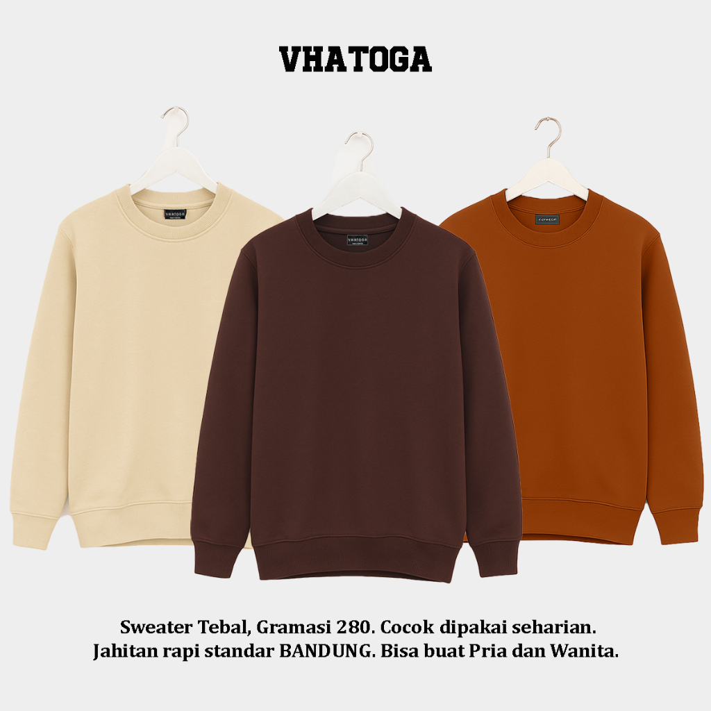 VHATOGA - Crewneck Sweater Polos Pria Wanita Unisex Reguler Fit|Mocca
