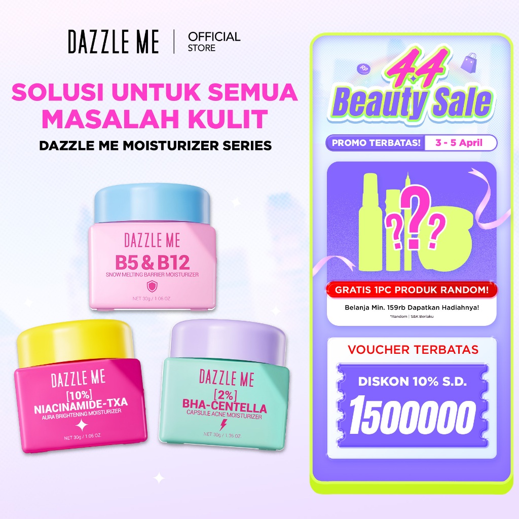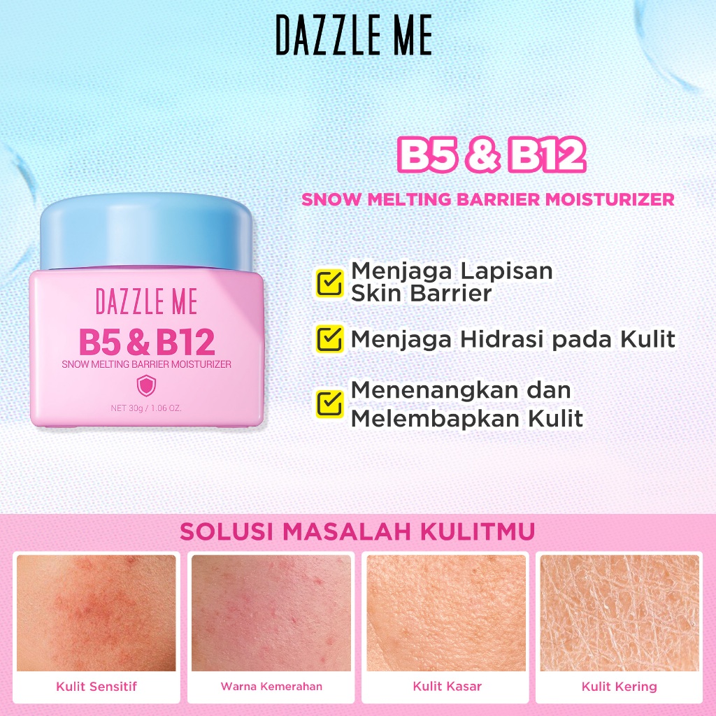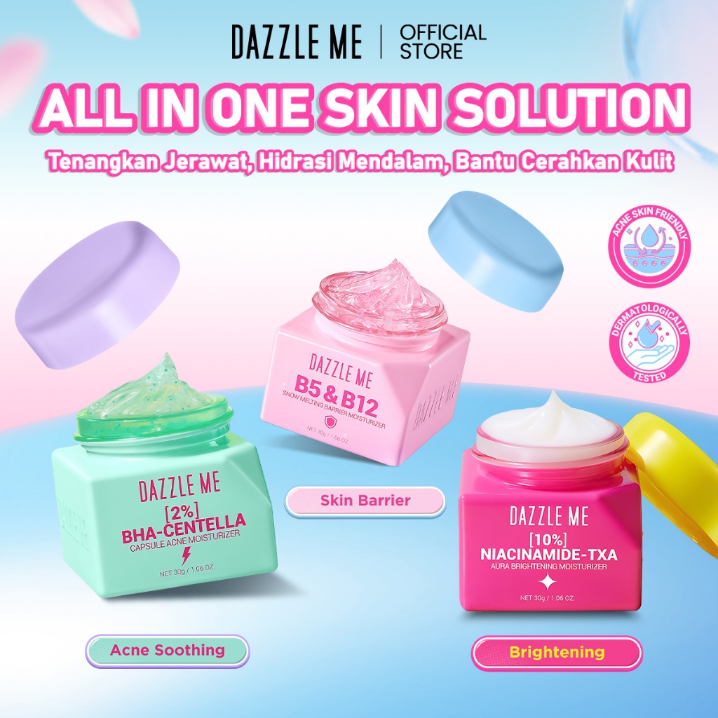 [NEW LAUNCH] Dazzle Me Moisturizer 30g Series B5&B12 Barrier Moist 10% Niacinamide–TXA Aura Brightening Moist 2% BHA–Centella Acne Moist Pelembab Skincare Wajah 3 Varian Solusi Lengkap untuk Semua Masalah Kulit Brightening Barrier Care Acne Treatment