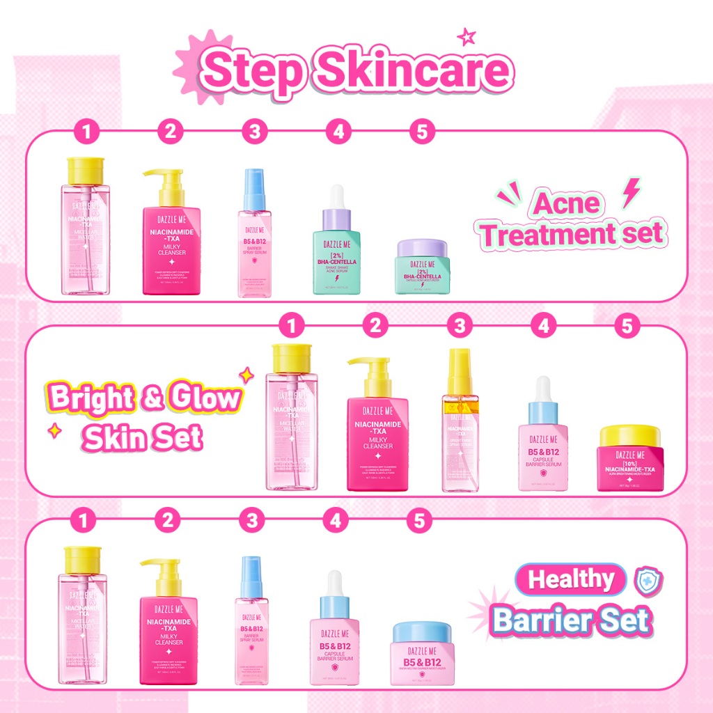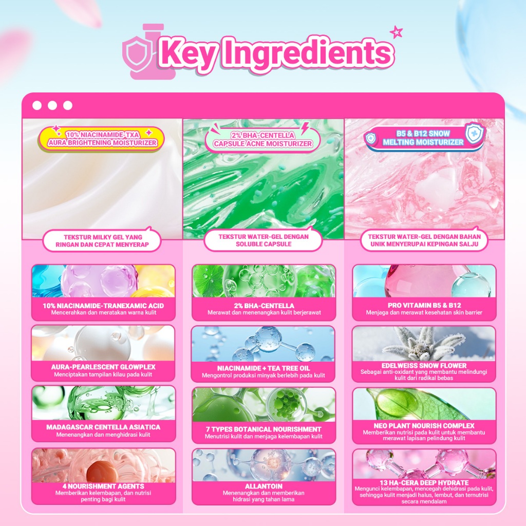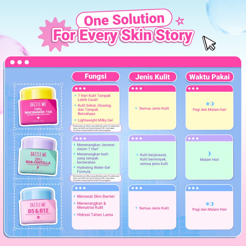 [NEW LAUNCH] Dazzle Me Moisturizer 30g Series B5&B12 Barrier Moist 10% Niacinamide–TXA Aura Brightening Moist 2% BHA–Centella Acne Moist Pelembab Skincare Wajah 3 Varian Solusi Lengkap untuk Semua Masalah Kulit Brightening Barrier Care Acne Treatment