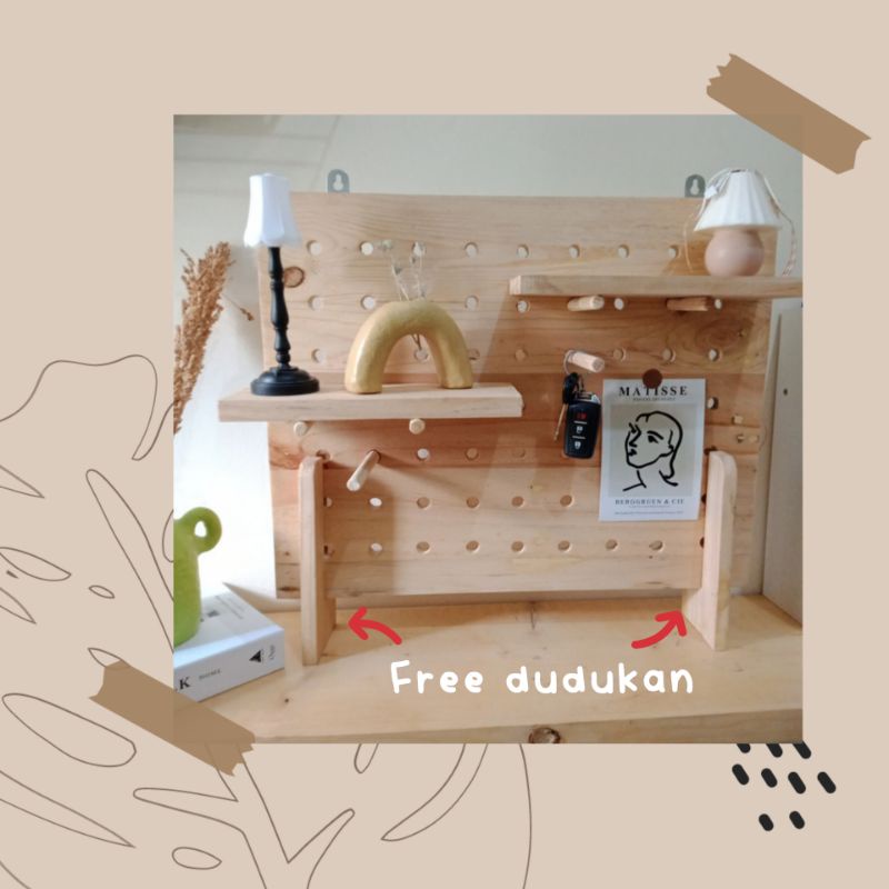 papan pegboard kayu rak ambalan wall decor hiasan dinding estetik rak dinding kayu
