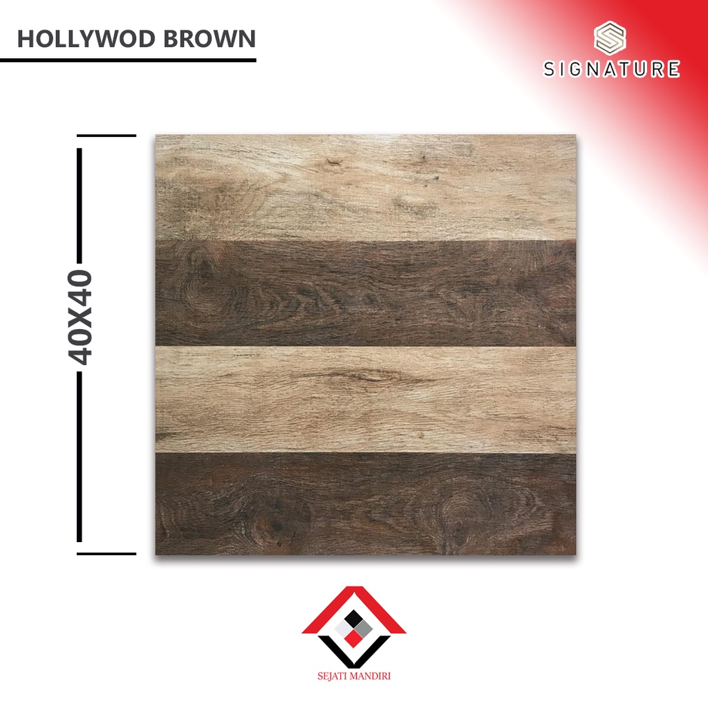 keramik 40x40 - motif kayu - signature - hollywood brown