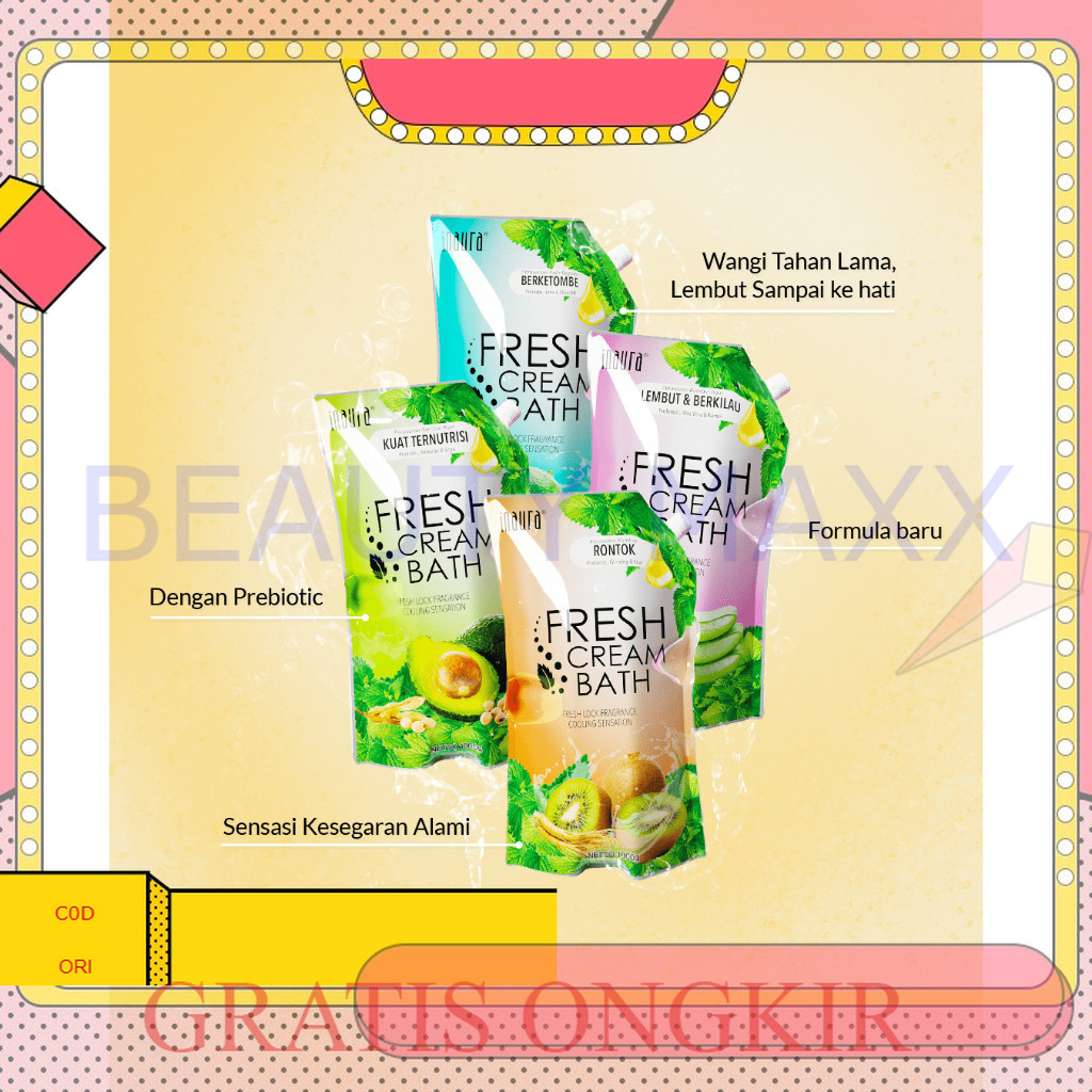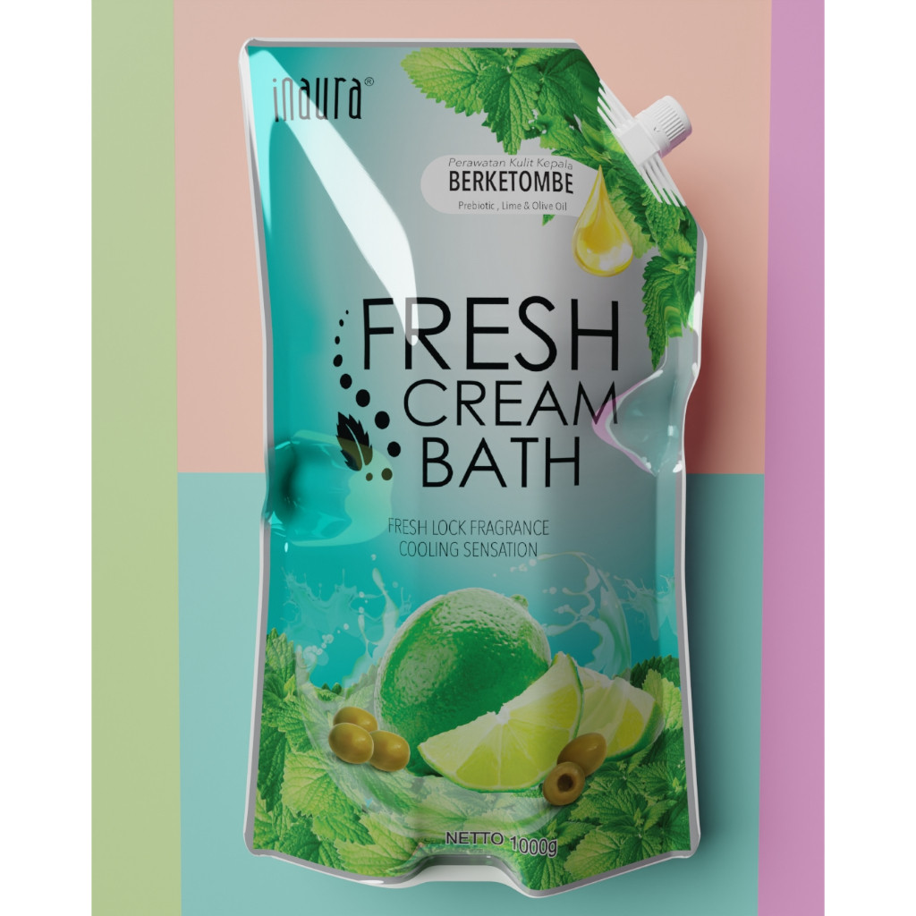 Inaura Fresh Cream Bath Lime & Olive / Perawatan Rambut Alami dan Menyegarkan 1000ml