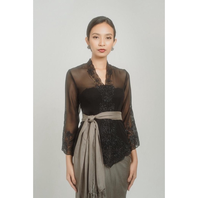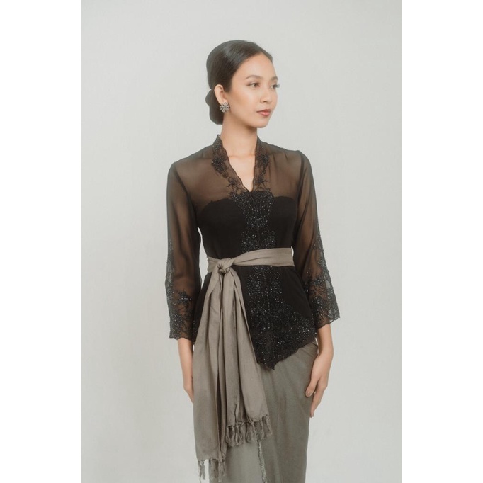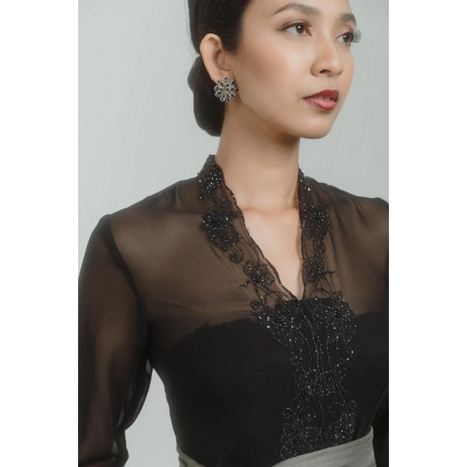 Lotus Embroidery Kebaya with Beads in Black
