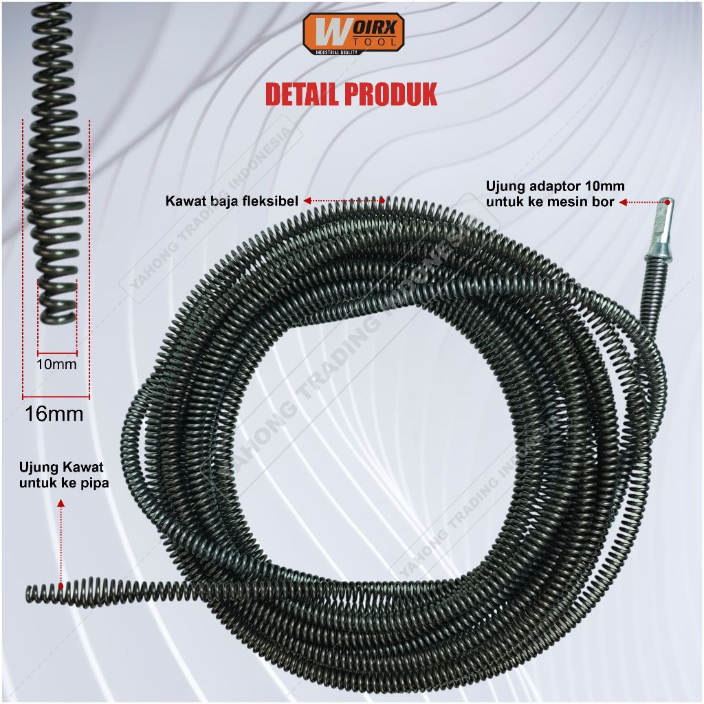 Kawat Pembersih Saluran Pipa Mampet Dengan Adaptor Bor Pipe Cleaner 5M 10M WOIRX TOOL