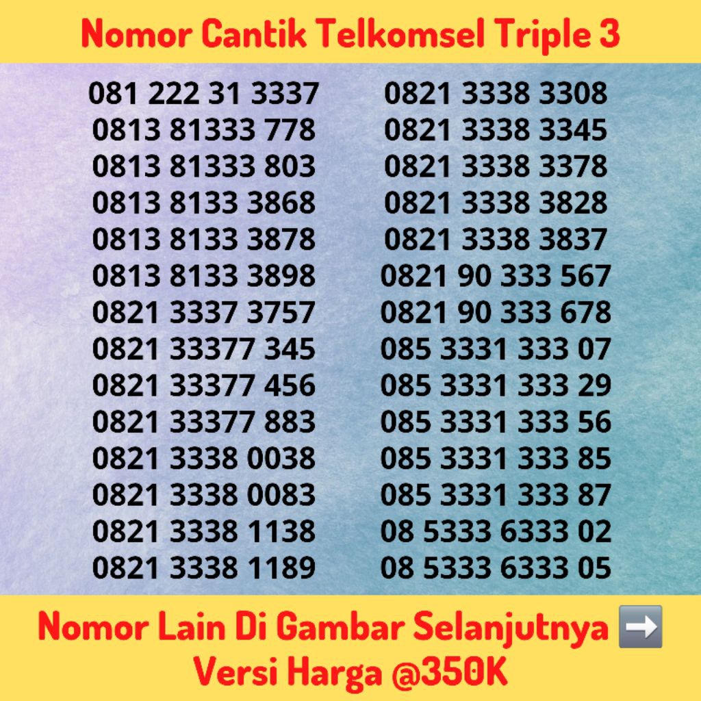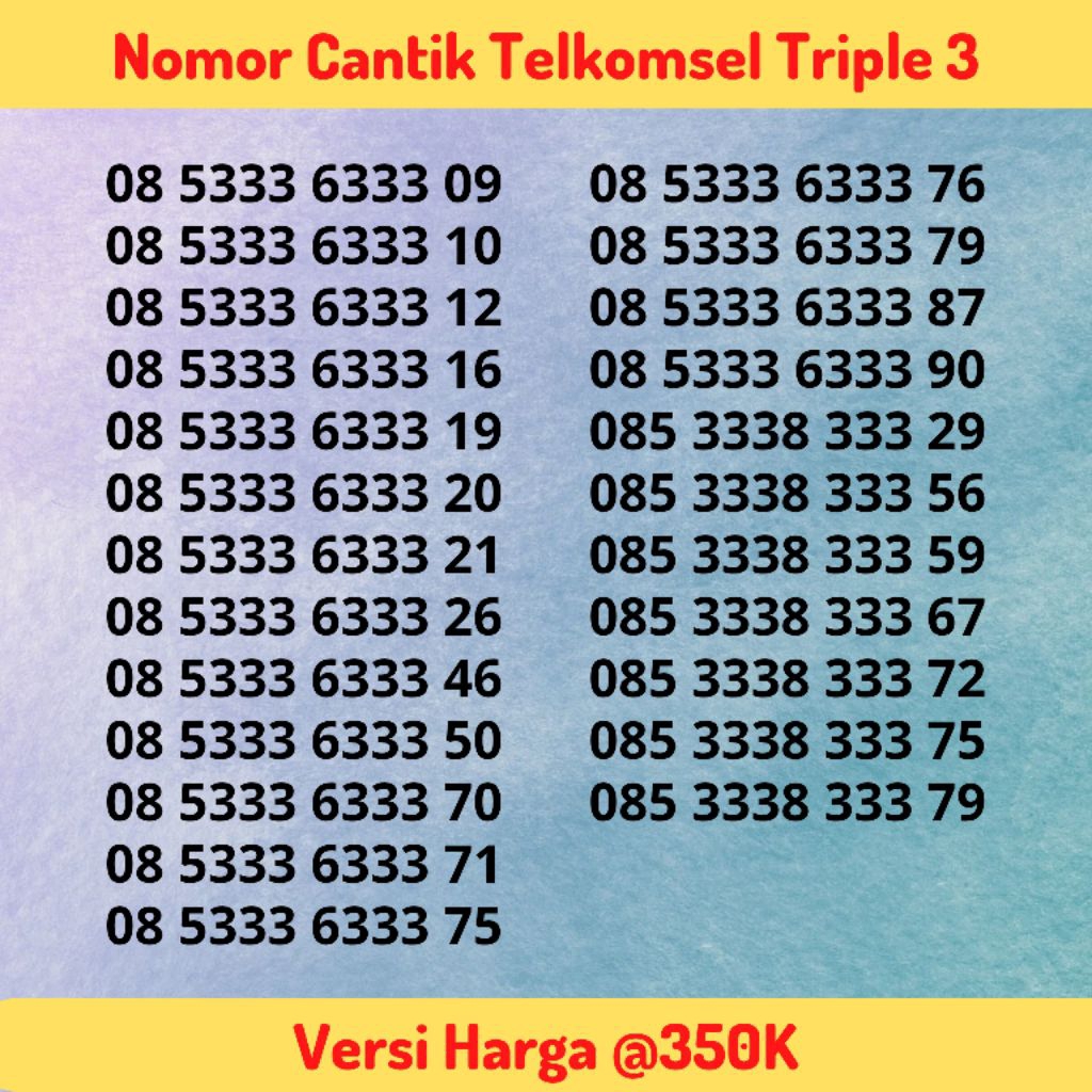Nomor Cantik Telkomsel Seri Triple 3 / 333 Tengah Versi @350K - Kartu Perdana Simpati Hokky