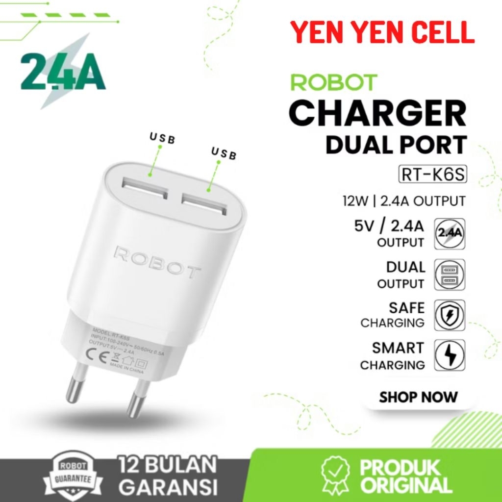 ROBOT RT-K6S / RT-K6 NEW Batok Kepala Adaptor Charger Smart Charging 5V 2.4A Dual Output Dua Port RTK6S / RTK6 NEW