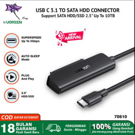 Ugreen HDD SSD Case Enclosure External 2.5 Type C 3.1 Micro B 6 Gbps ANTI SHOCK