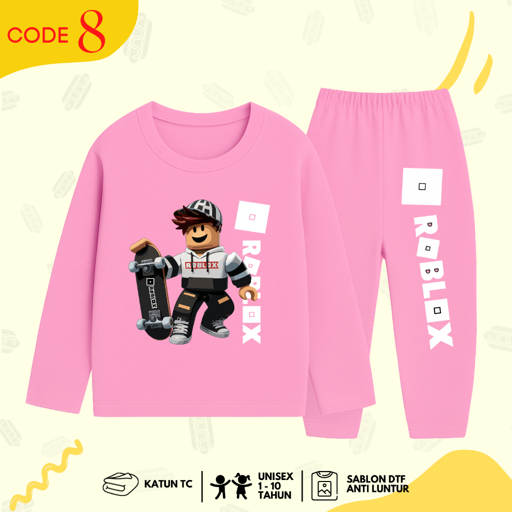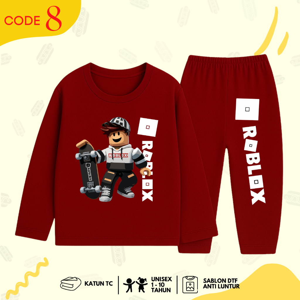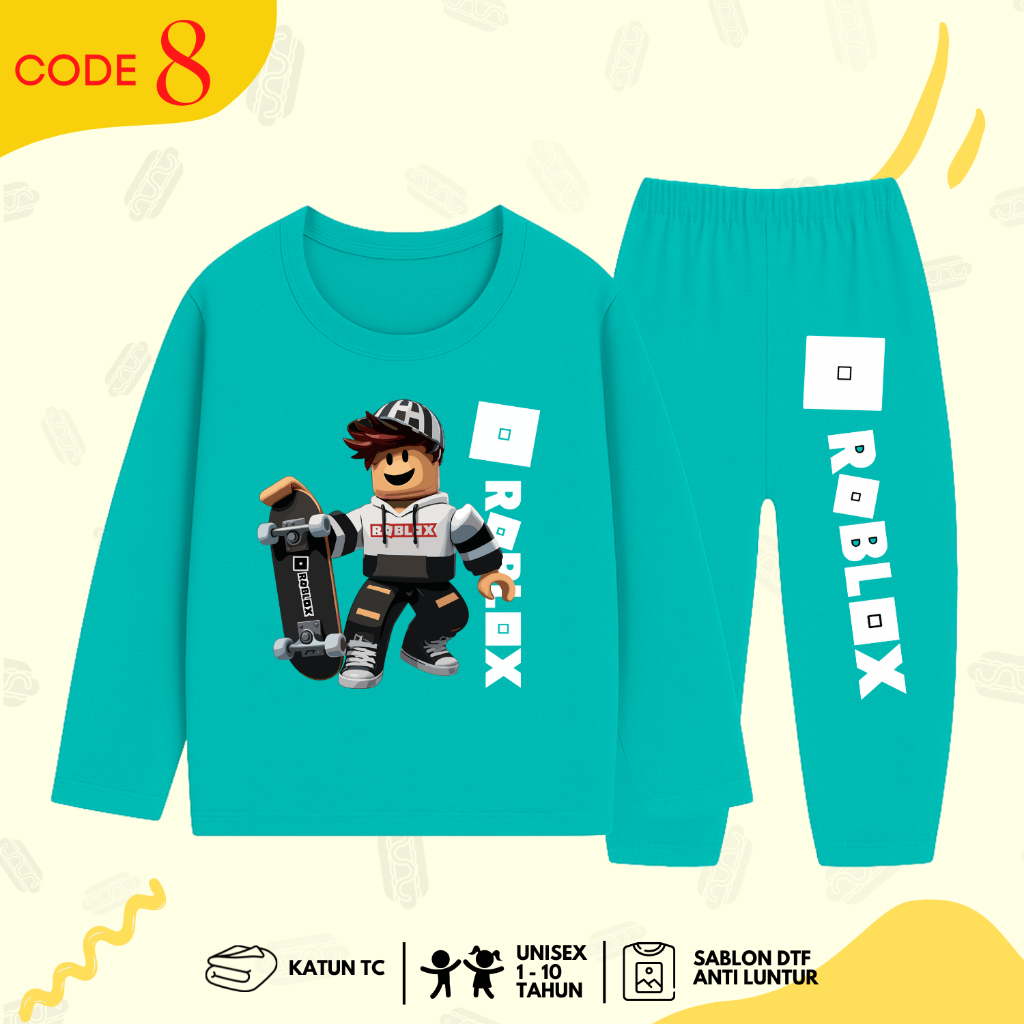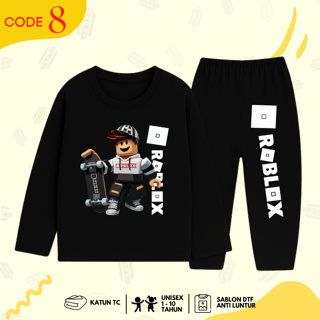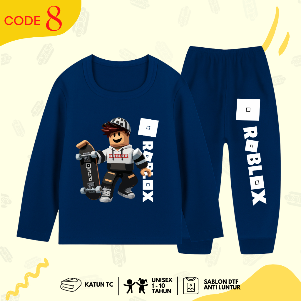 Baju Setelan Piyama Tidur Anak Laki Laki Karakter Roblox Skeatboard Lengan Panjang 1 - 10 Tahun