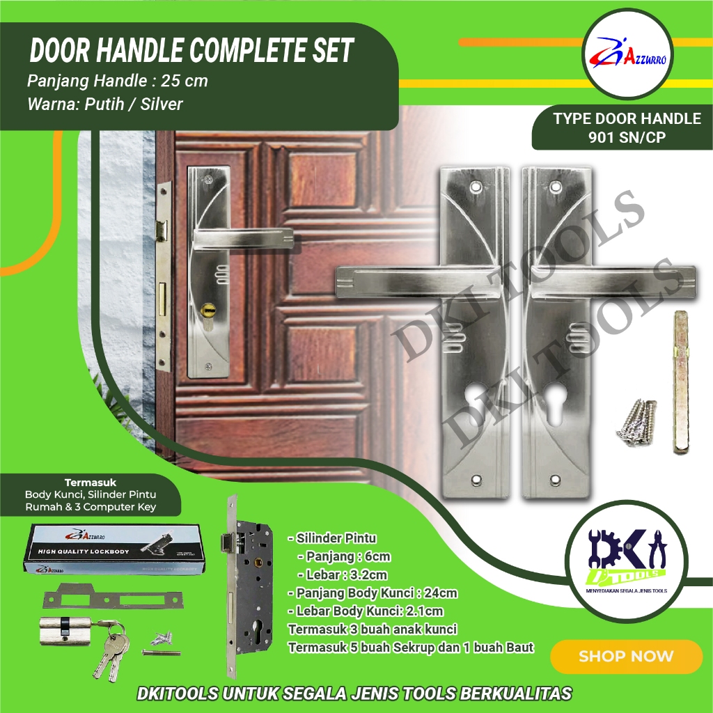 AZZURRO Door Handle Gagang Kunci Pintu Plat Rumah Besar Set 25cm Komplit 901 Silver