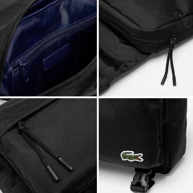 TAS LACOSTE NEOCROC CANVAS FLAP BELT WAIST BAG BLACK ORIGINAL FDHGF4654