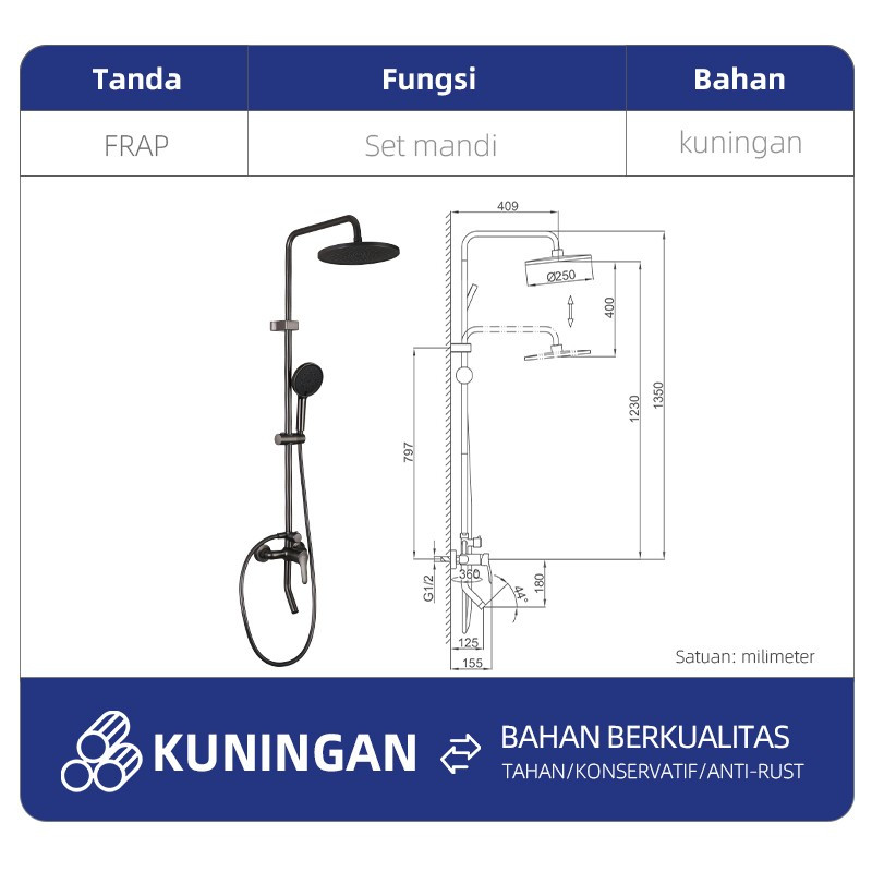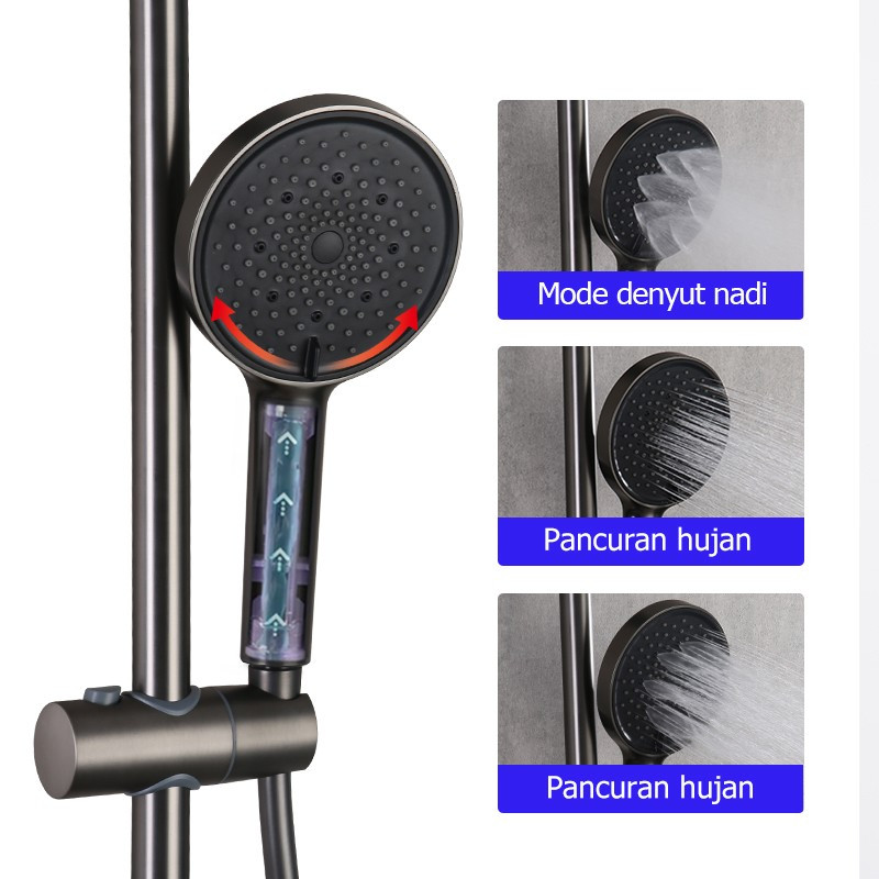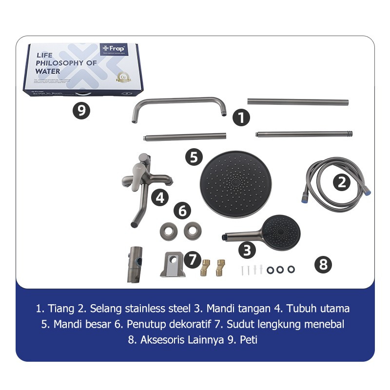 FRAP F24011-9 Paket Lengkap Rain Shower Tiang Mandi Abu Abu Air Panas dan Dingin