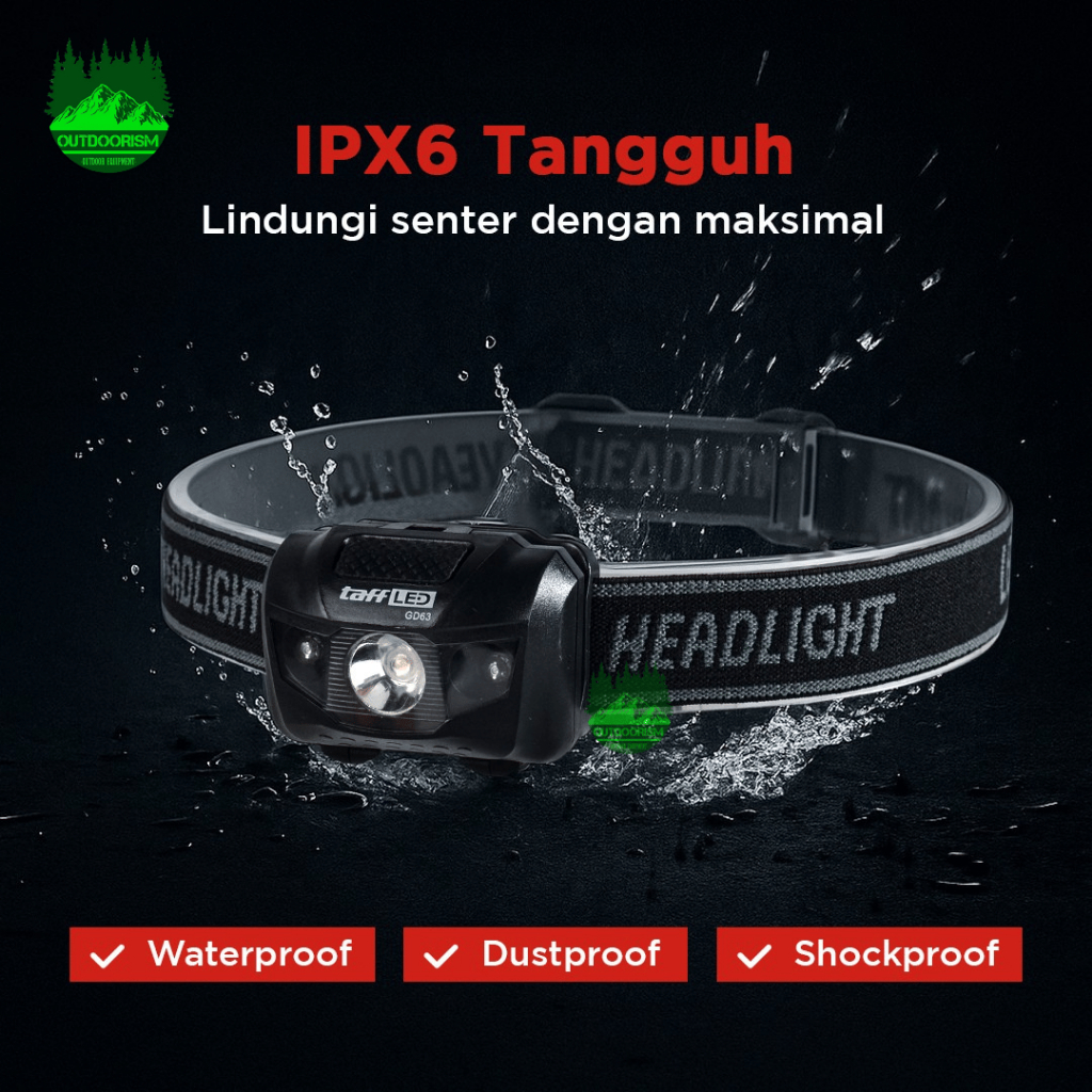 TAFFSPORT SENTER KEPALA HEADLAMP COB LED FLASHLIGHT WATERPROOF OUTDOOR HIKING LAMPU SUPER TERANG