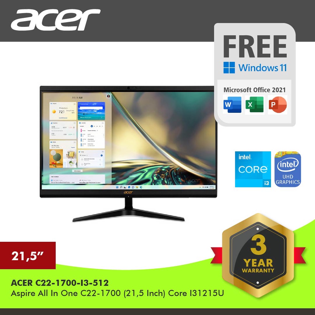 ACER Aspire All in One C22-1700-I3-512/21.5'' Core i3 Garansi Resmi