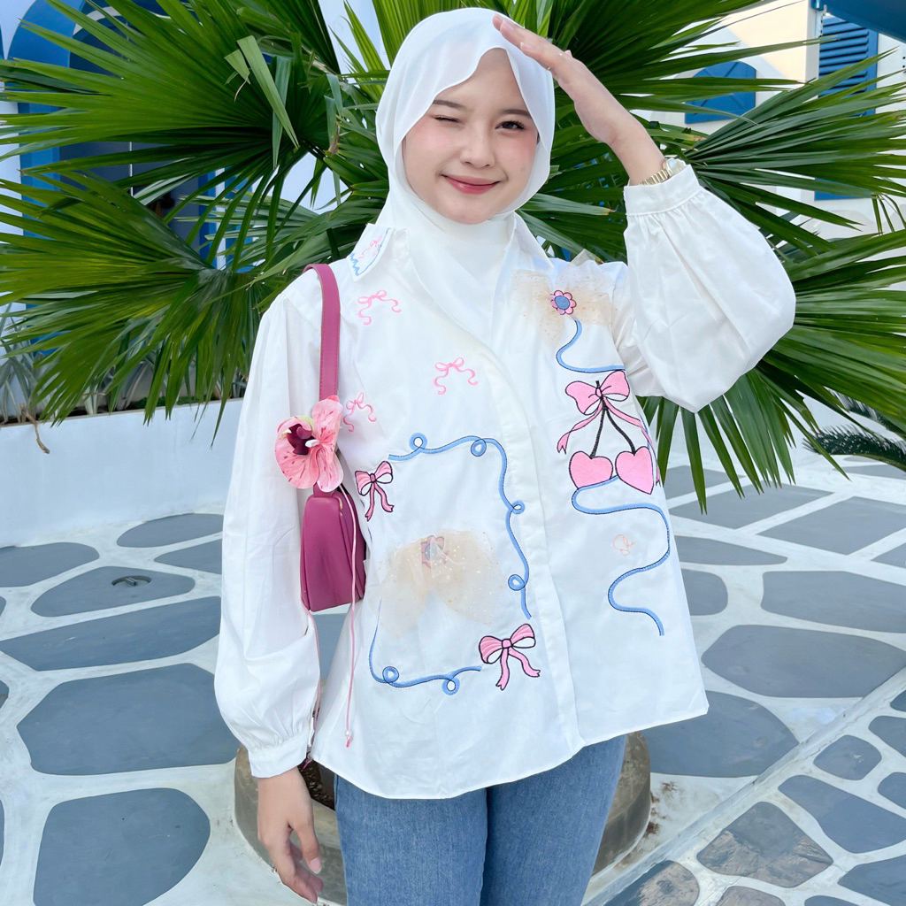 SHE - PEVITA BLOUSE BORDIR PITA KOREANLOOK BY SHEMANGAT ID/BLOUSE BORDIR HIJAB OVERSIZE