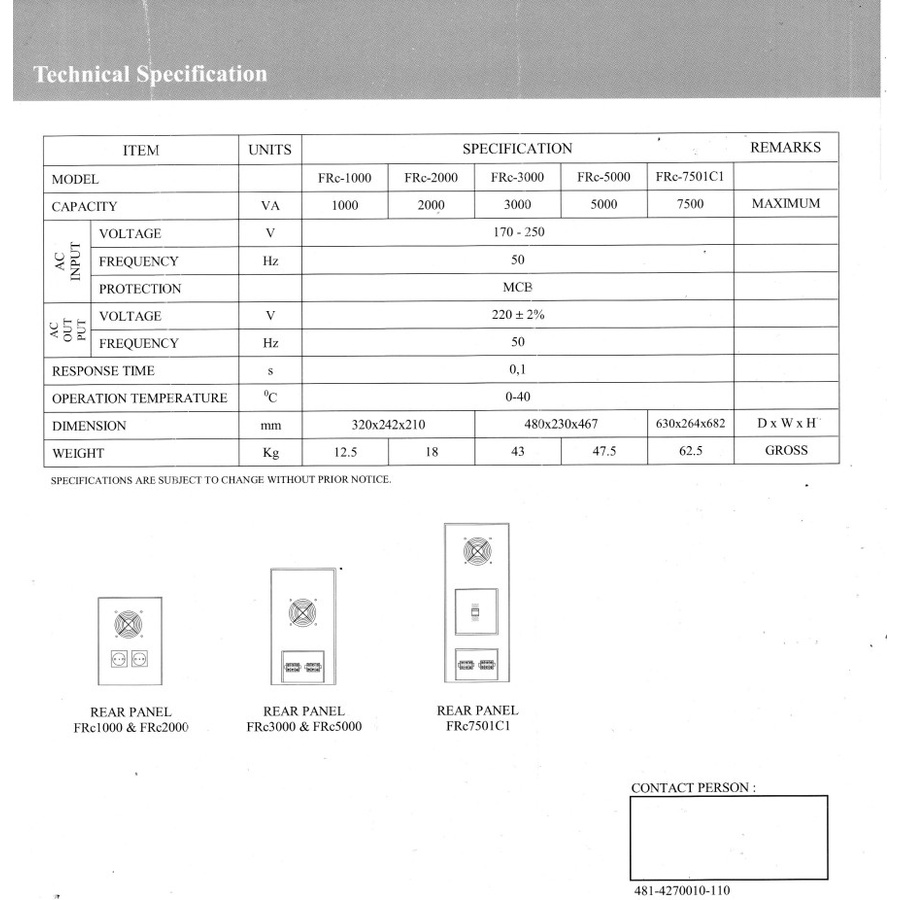 STABILIZER ICA FRC2000 Stabilzer Ferro Resonant Control 2000va