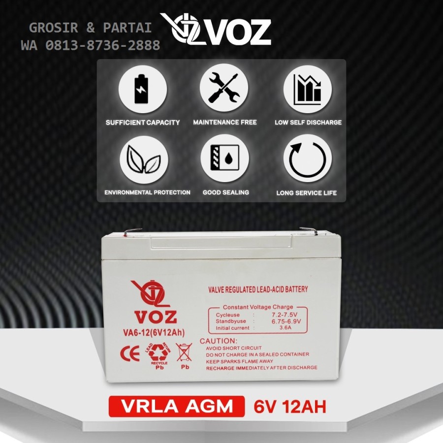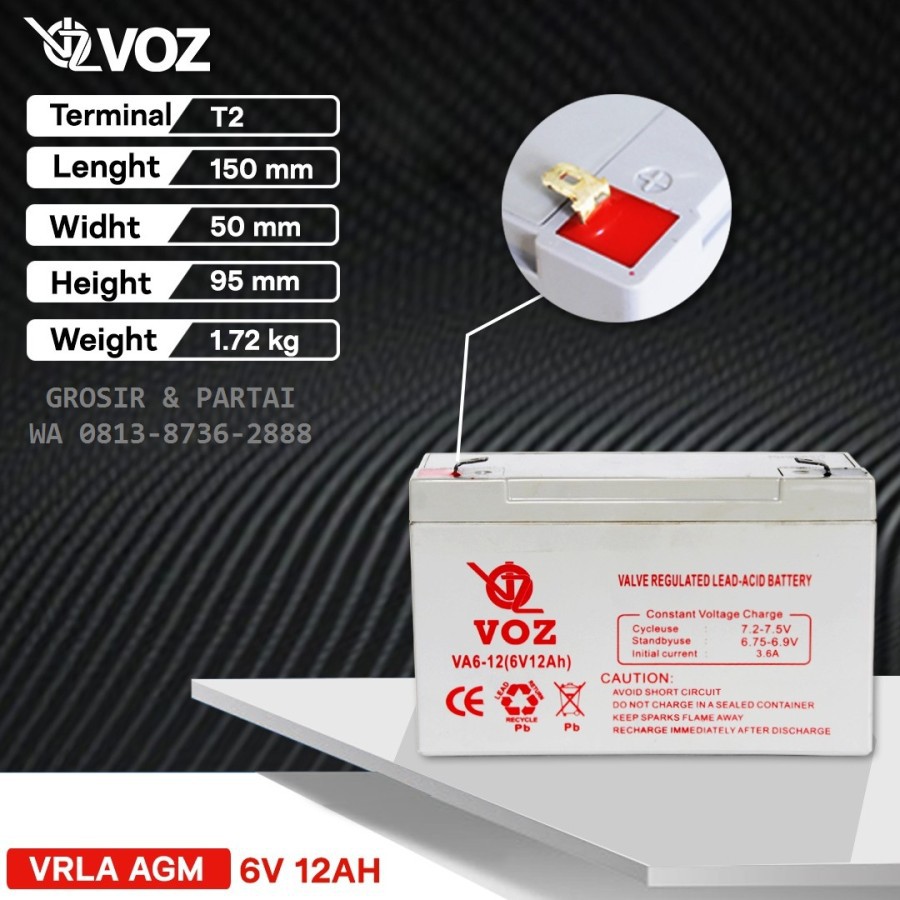 Battery UPS Voz 6V 12AH Aki Kering Voz 6V 12AH