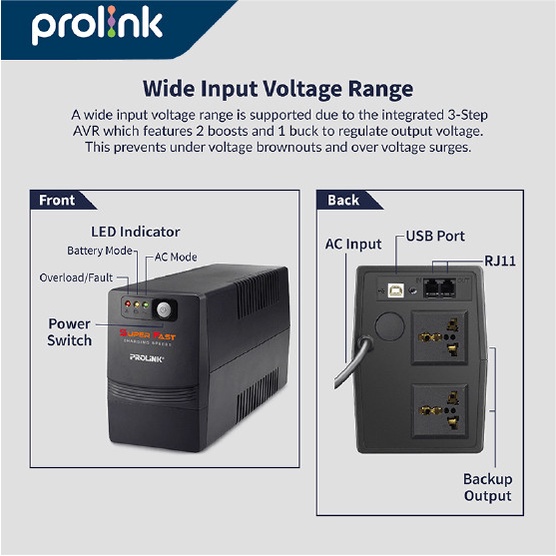UPS PROLINK PRO851SFCU 850VA 510W Super Fast Charging Line Interactive
