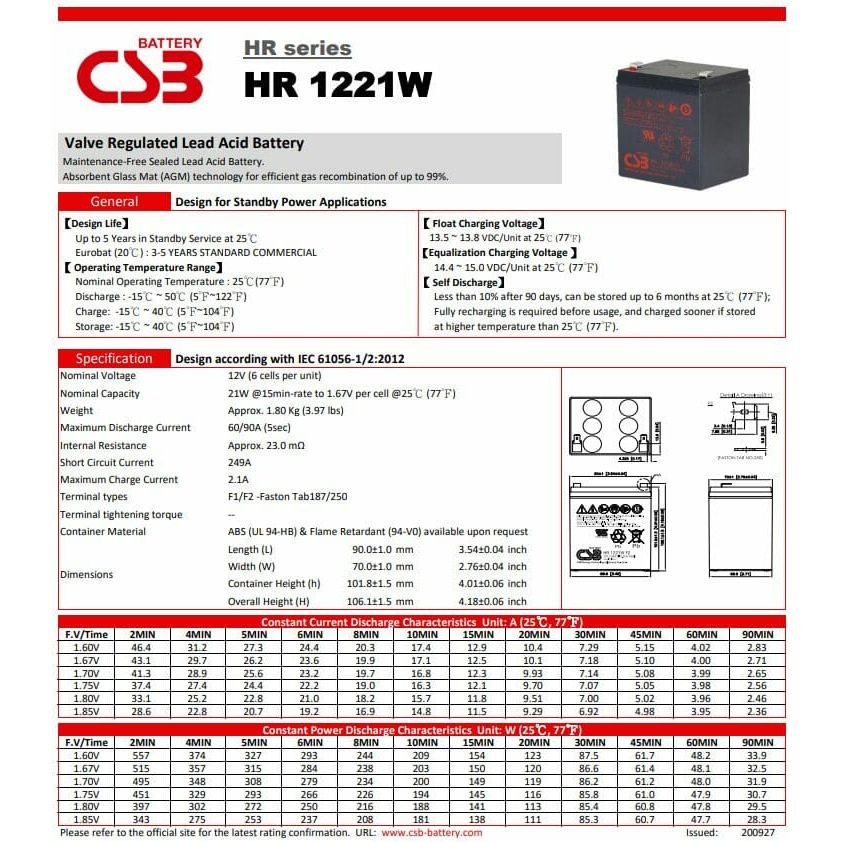 Baterai CS3 CSB HR1221W 12V 5AH Original