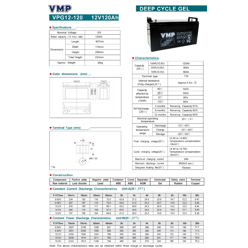 Baterai VMP NPG12-120 12V 120AH GEL Deep Cycle Battery Aki Kering Solar Panel