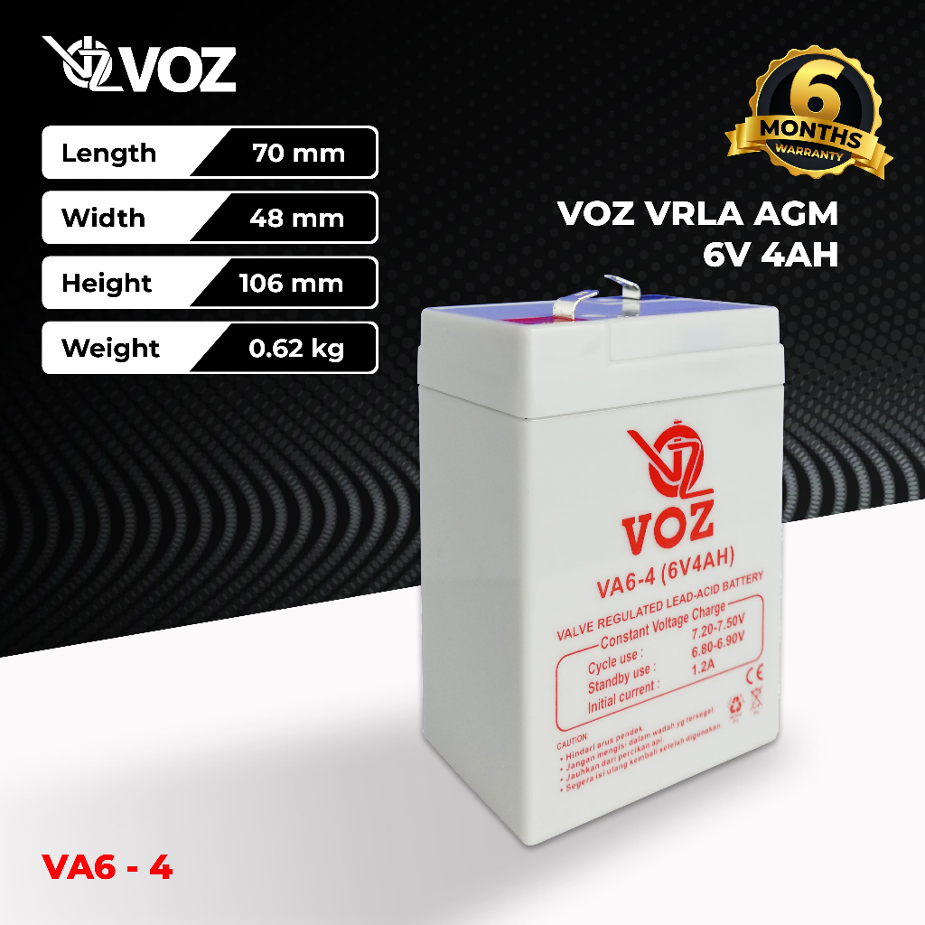 Baterai VOZ VA6-4 6V 4AH lampu emergency, timbangan digital, mainan anak (mobil/motor listrik)