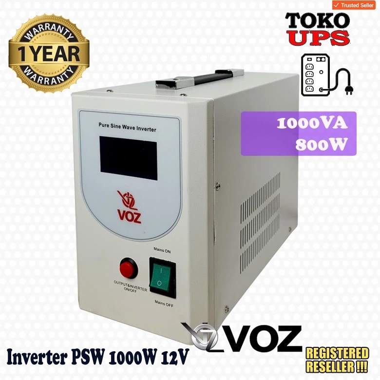 VOZ Inverter PSW 1000VA 800W Pure Sinewave dengan Baterai LiFePO4 12.8V 50AH Garansi 2 Tahun UPS Long Backup VOZ