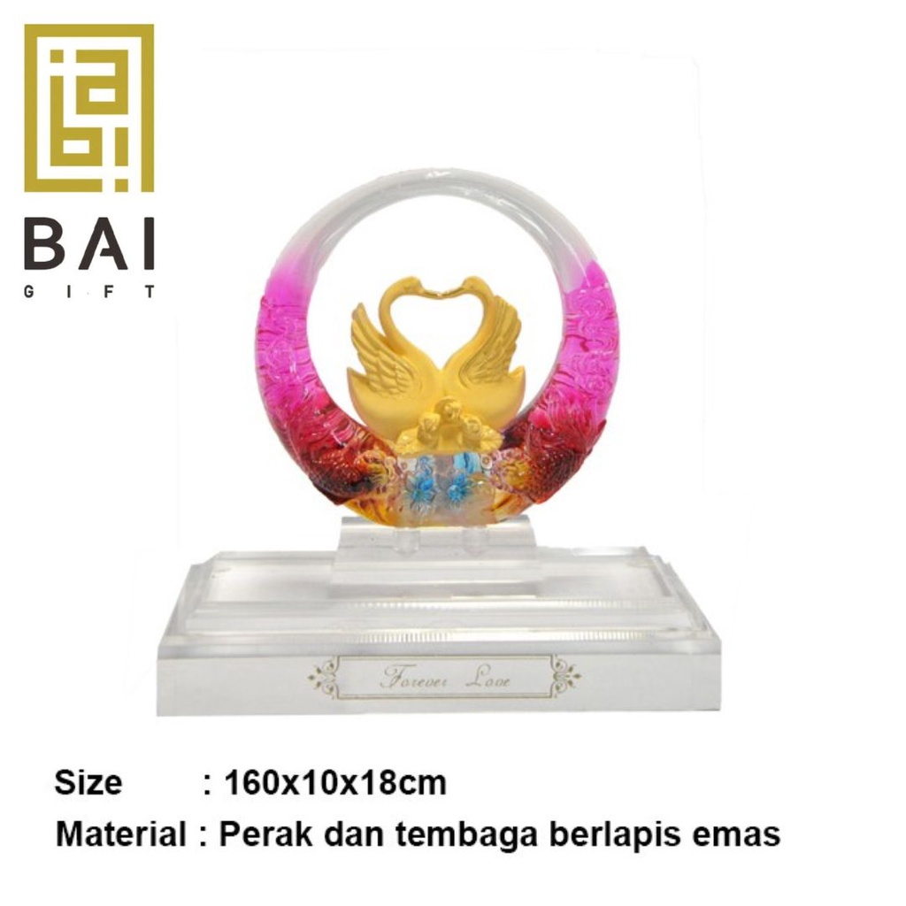 BAI GIFT Pajangan Sepasang Angsa Lapis Emas 24k Patung Sepasang Angsa Harmonis Hadiah Wedding Hadiah Anniversary