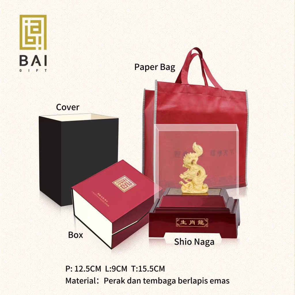 BAI GIFT PAJANGAN PATUNG SHIO NAGA MINI LAPIS EMAS 24K PATUNG SHIO NAGA HADIAH PREMIUM