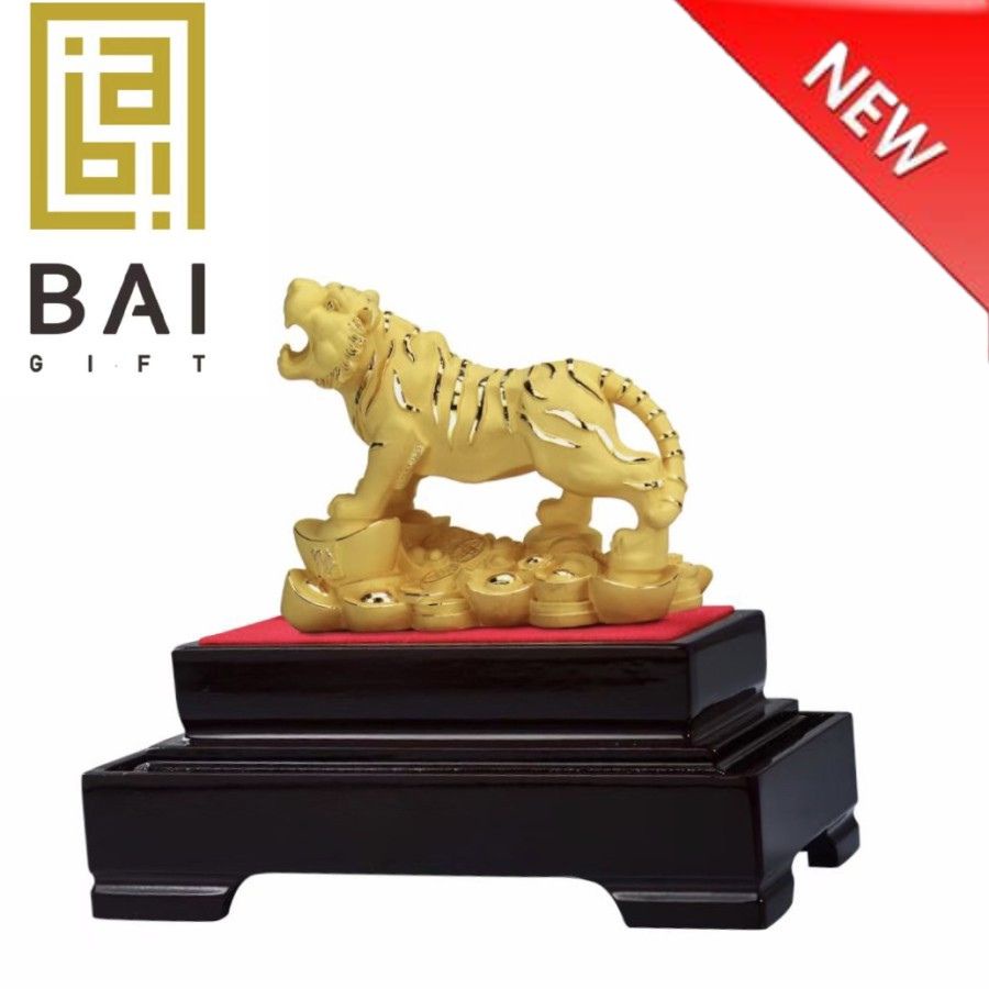 BAI GIFT PAJANGAN PATUNG SHIO MACAN LAPISAN EMAS 24K SOUVENIR PATUNG SHIO MACAN UKURAN M