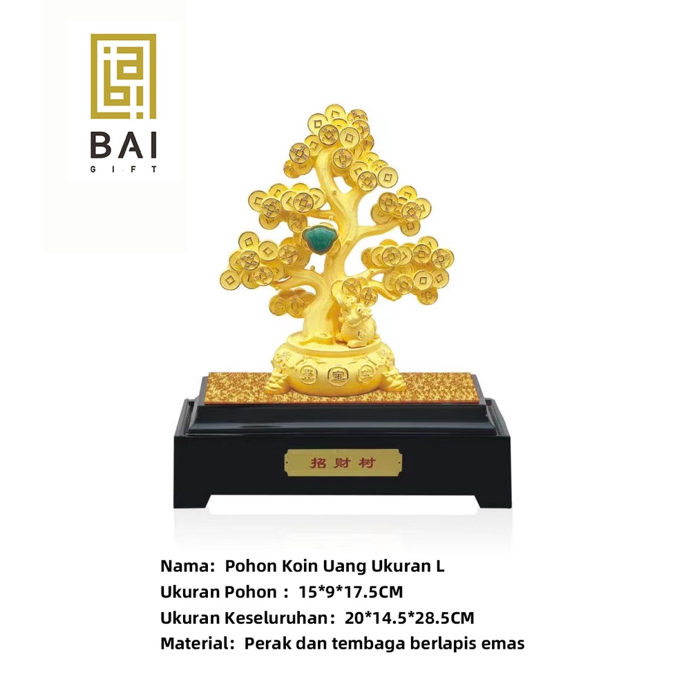 BAI GIFT PAJANGAN PATUNG POHON UANG PEMBAWA REJEKI MINIATUR POHON KOIN UANG FENGSHUI - L 200x 145 x 285 MM
