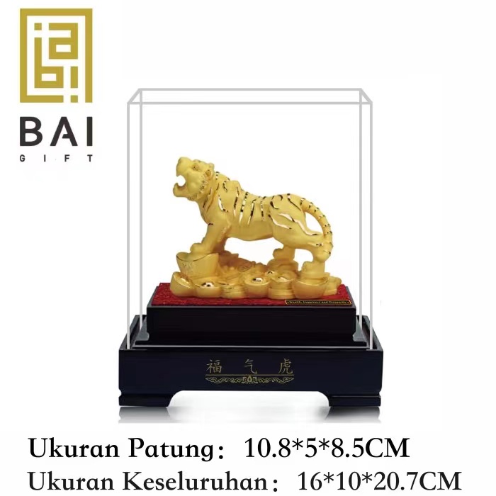 BAI GIFT PAJANGAN PATUNG SHIO MACAN LAPIS EMAS 24K PATUNG SHIO MACAN HADIAH IMLEK PREMIUM