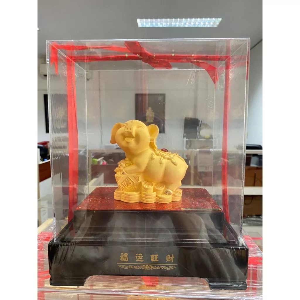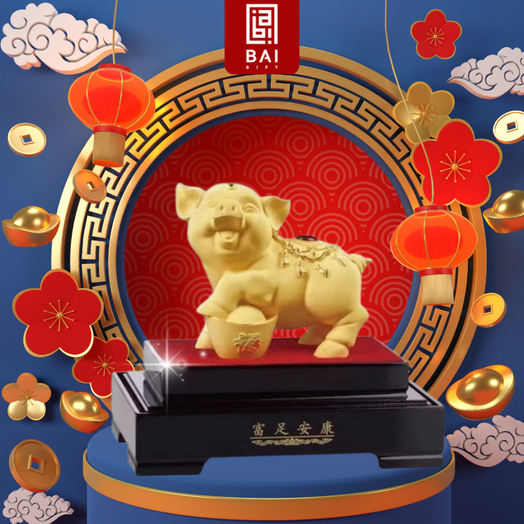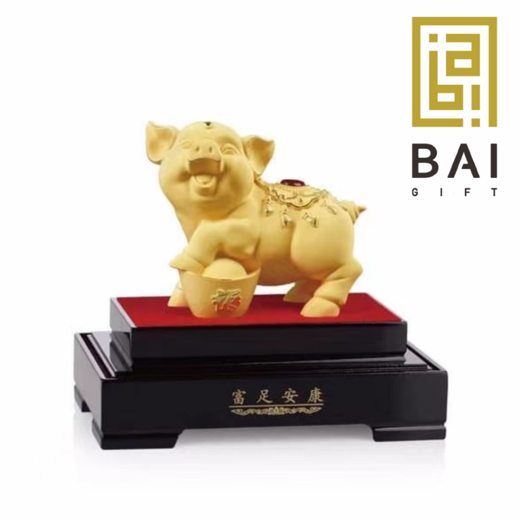 BAI GIFT Pajangan Patung Shio Babi Lapis Emas 24k Patung Shio Babi Hadiah Premium Miniatur Shio Babi