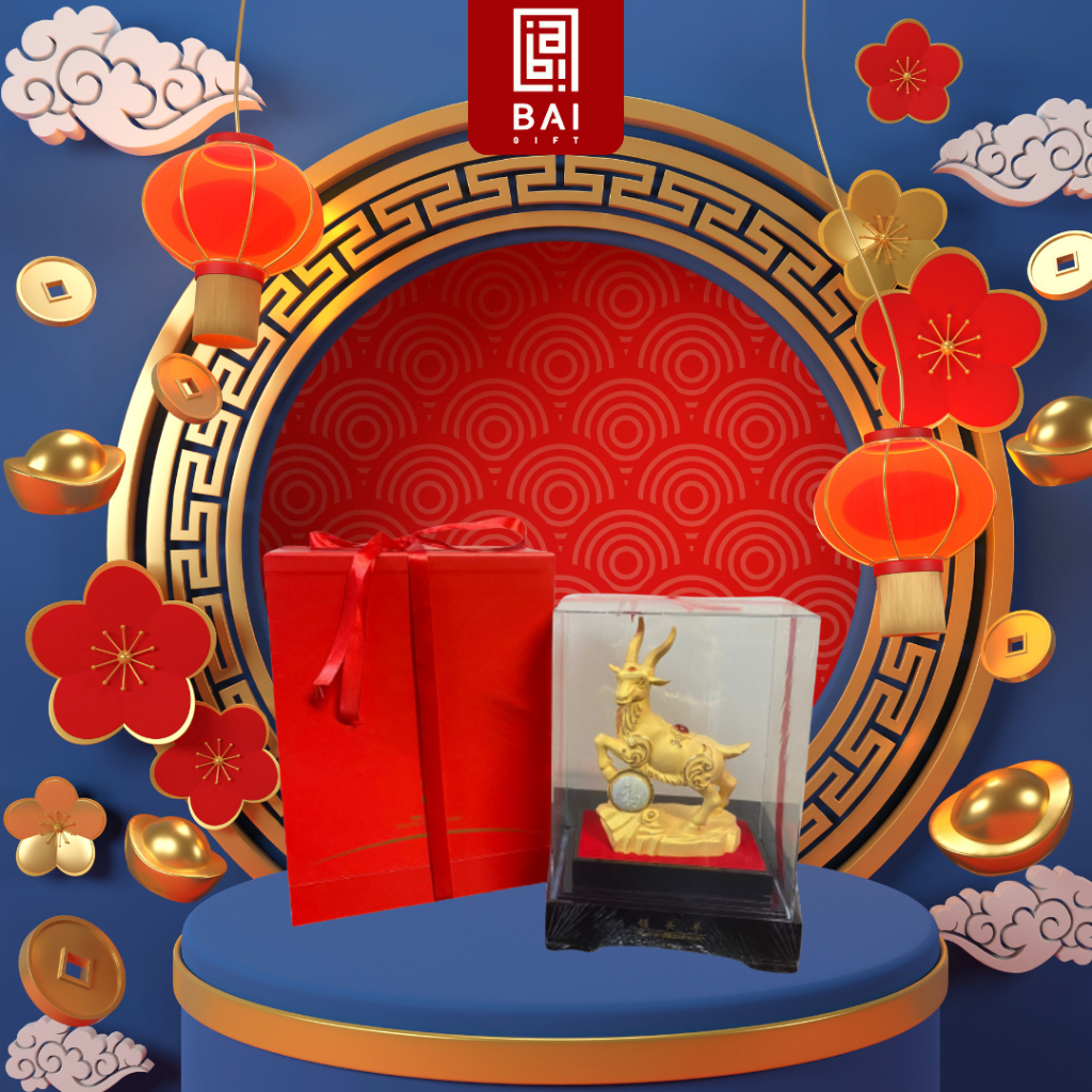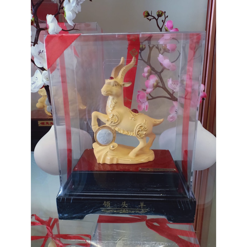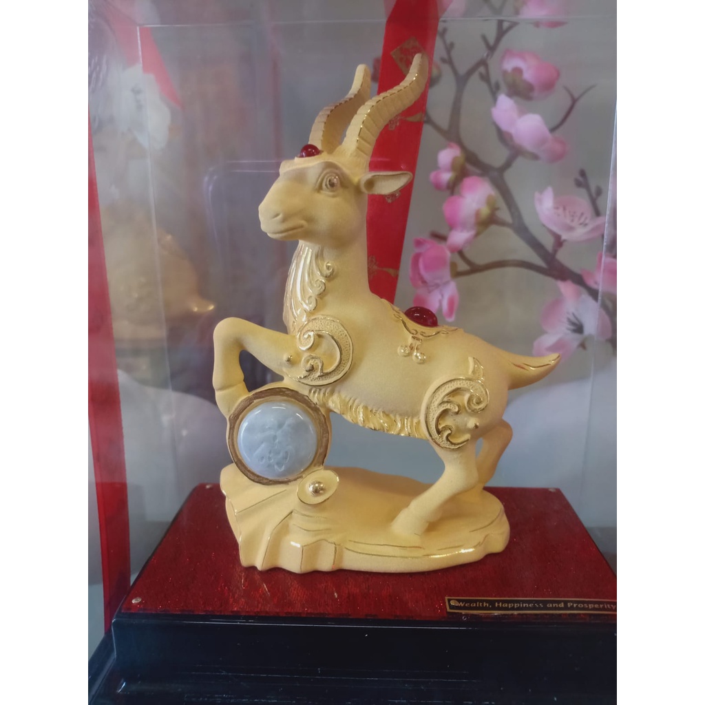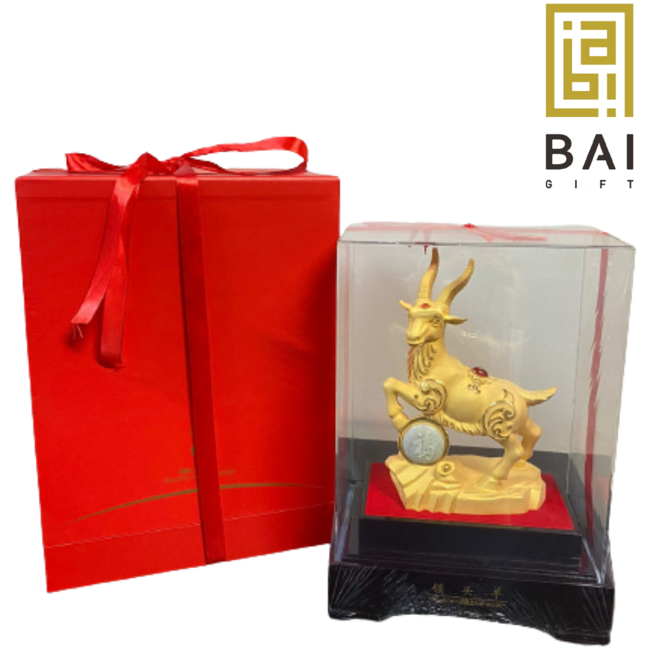 BAI GIFT PAJANGAN PATUNG SHIO KAMBING LAPISAN EMAS 24K PATUNG KAMBING HADIAH PREMIUM