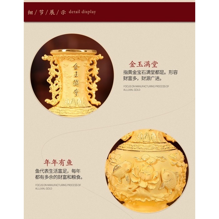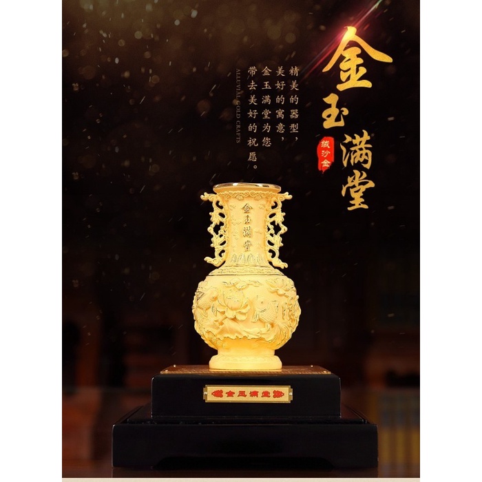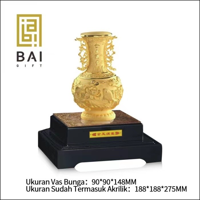 BAI GIFT Pajangan Vas Bunga Fengshui Lapis Emas 24K Dekorasi Rumah Vas Bunga Lapis Emas 24k Bersertifikat