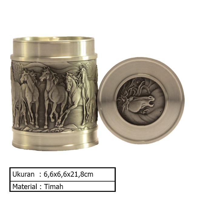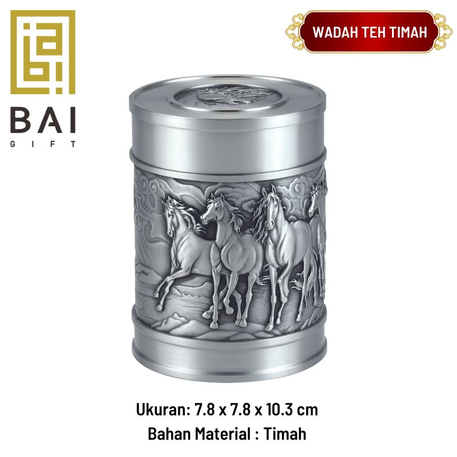 BAI GIFT Wadah Teh Motif Kuda / Tempat Penyimpanan Teh Bahan Timah Hadiah Premium