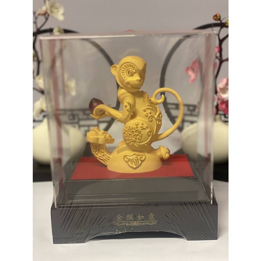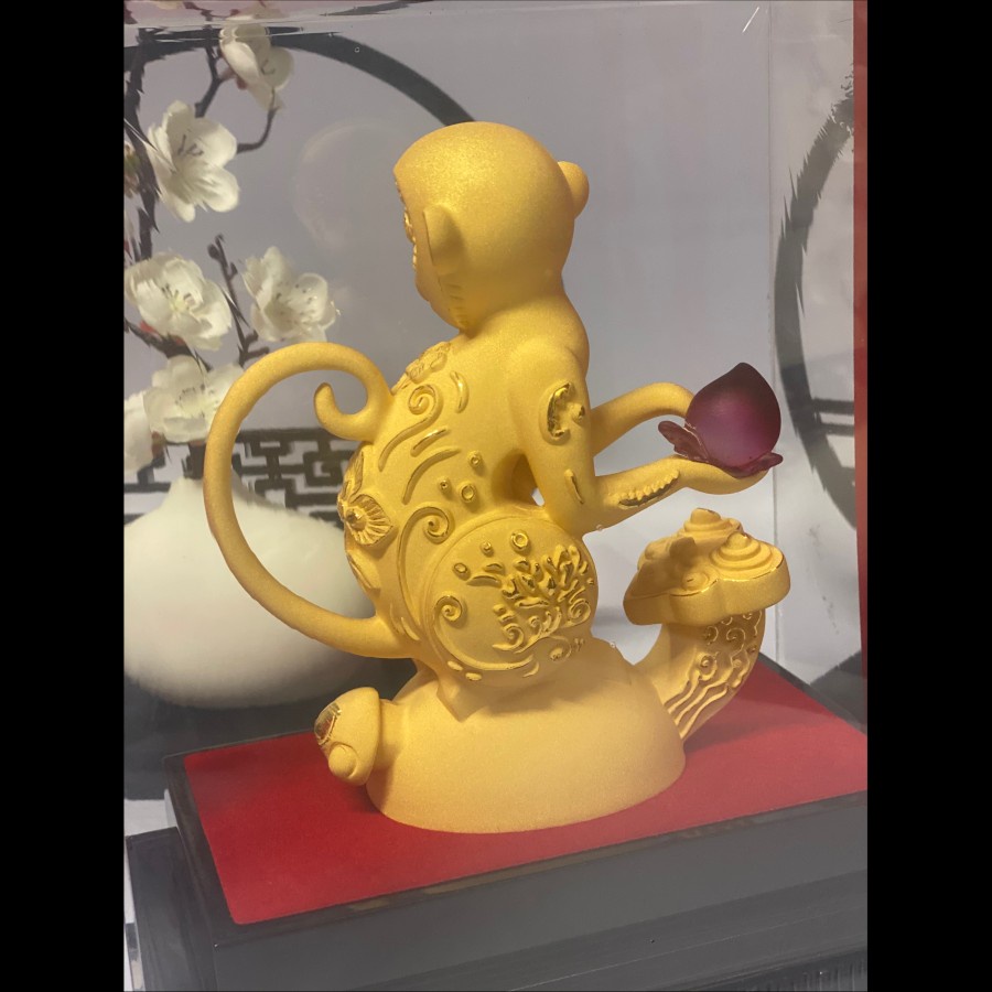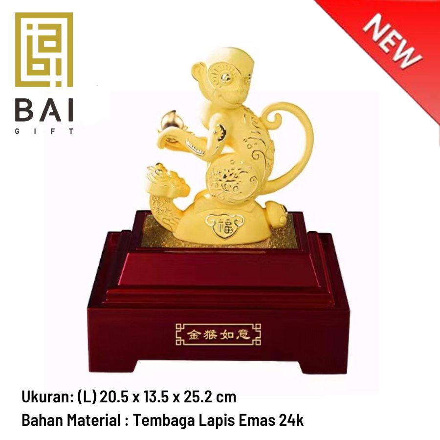 BAI GIFT Pajangan Patung Shio Monyet Hoki Lapis Emas 24K Patung Shio Monyet