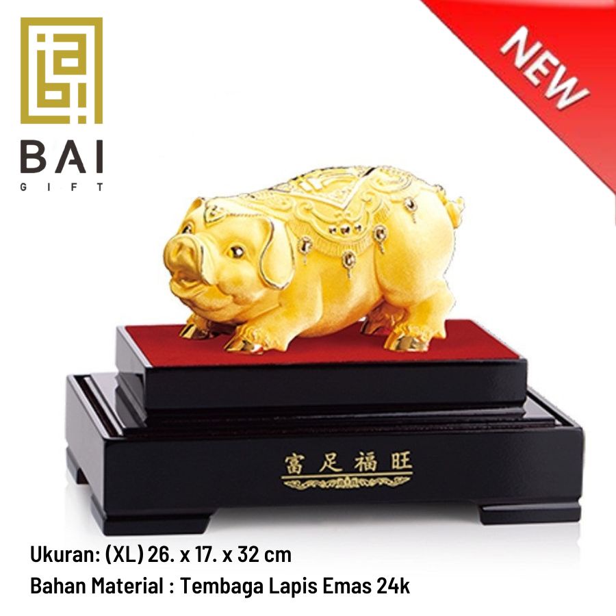 BAI GIFT PAJANGAN PATUNG SHIO BABI LAPIS EMAS 24K SIZE XL