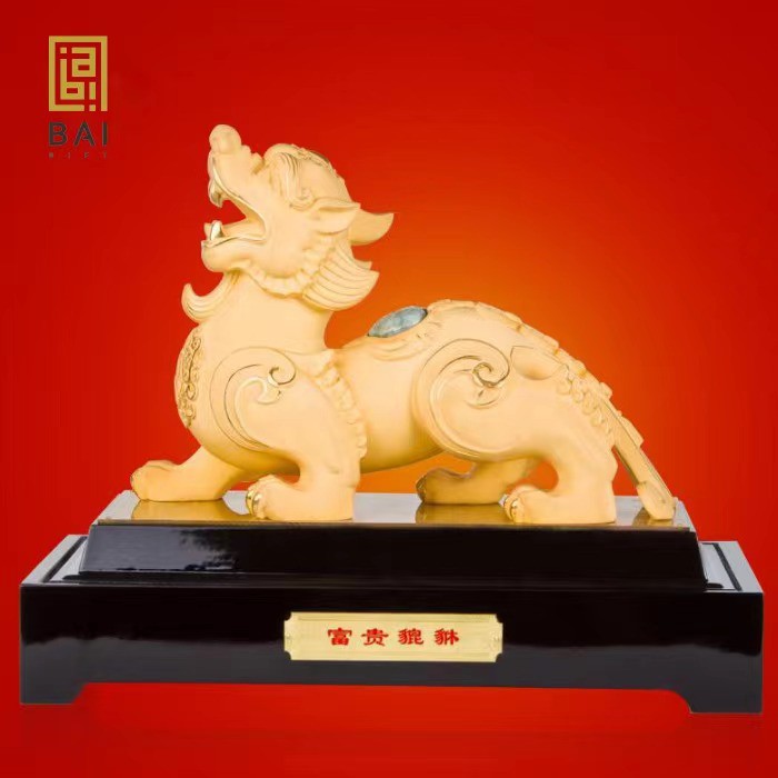 BAI GIFT Patung Pixiu Fengshui Pajangan Hewan Suci L Lapis Emas 24k-Ukuran L Dengan Giok