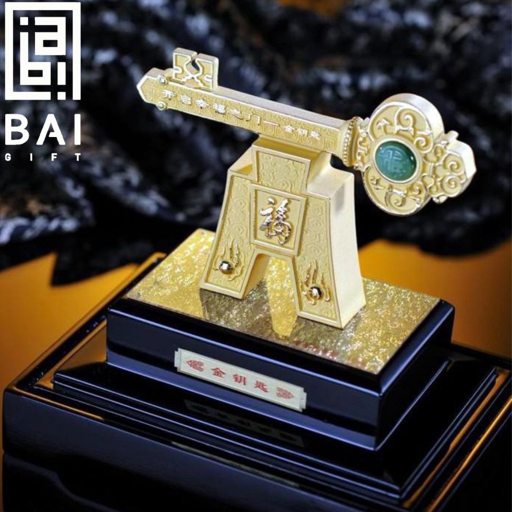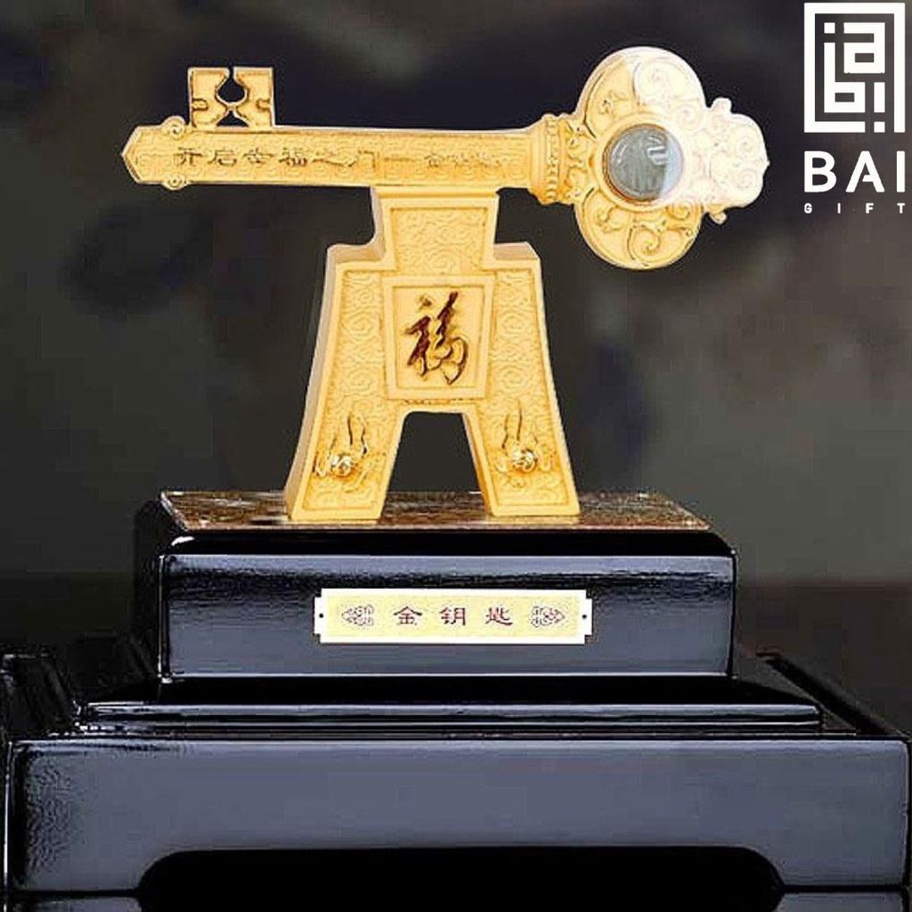 BAI GIFT Pajangan Kunci Fengshui Lapis Emas 24k Pajangan Pembawa Rezeki Patung Kunci Sukses