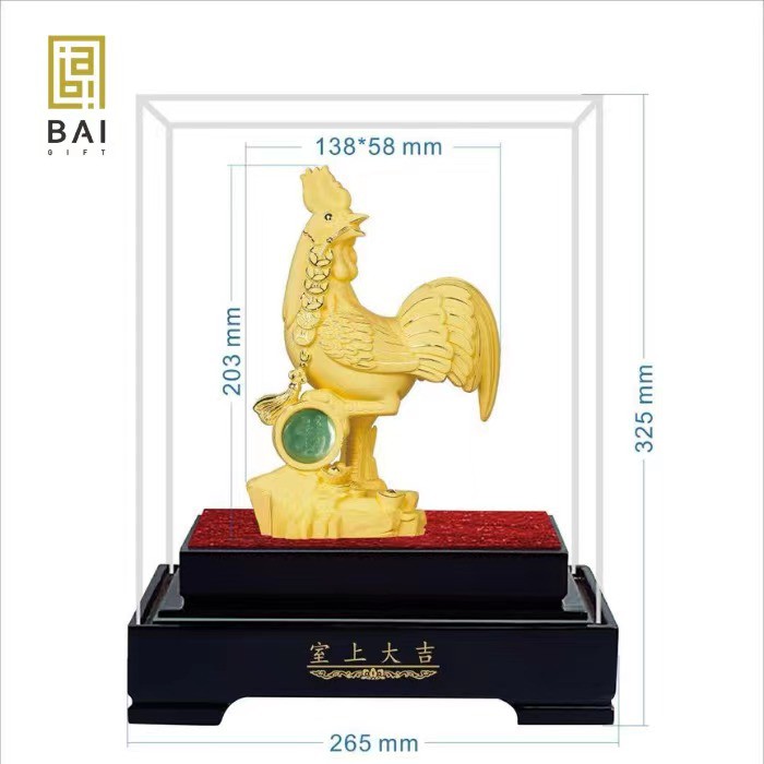 BAI GIFT Pajangan Patung Shio Ayam Jago Giok Lapis Emas 24K Patung Ayam Jantan Hoki