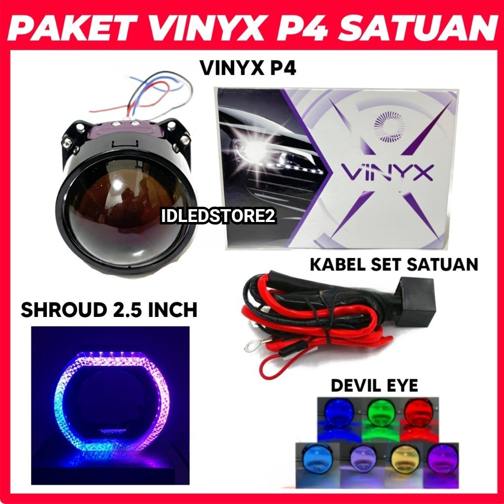 Paket Komplit Biled Vinyx p4 2.5 Inch Blue Lens 55 Watt Include Shroud + Devil + Kabel Set