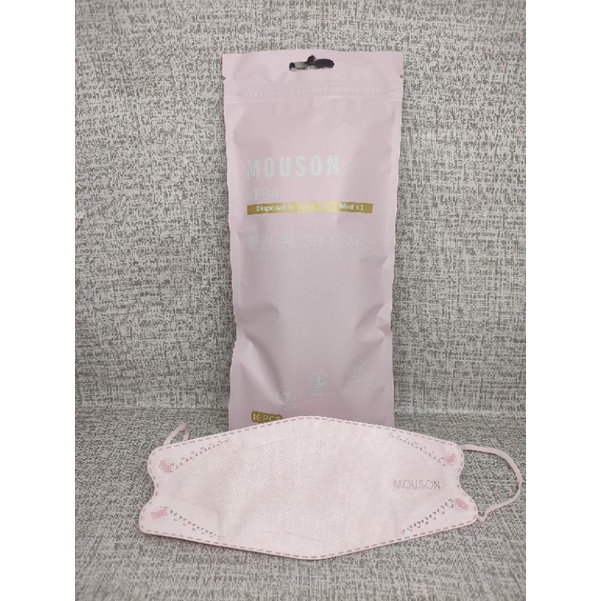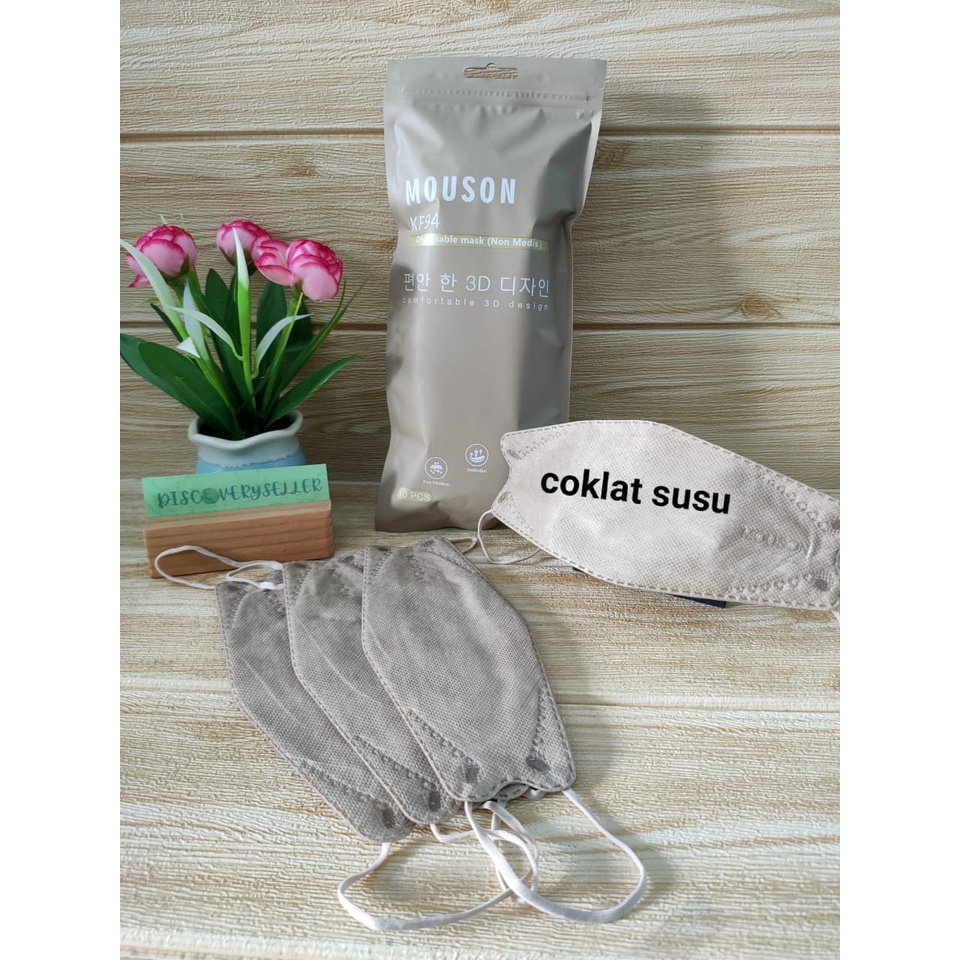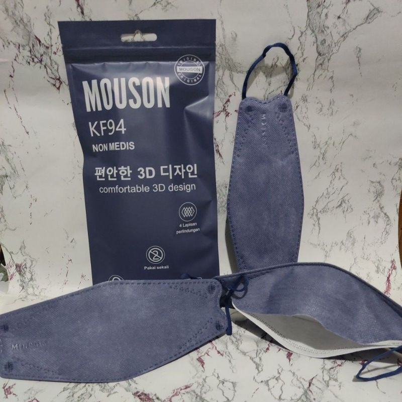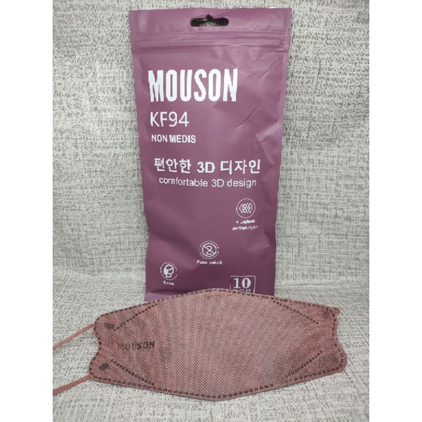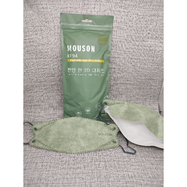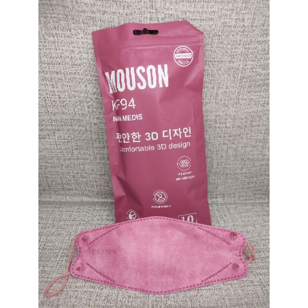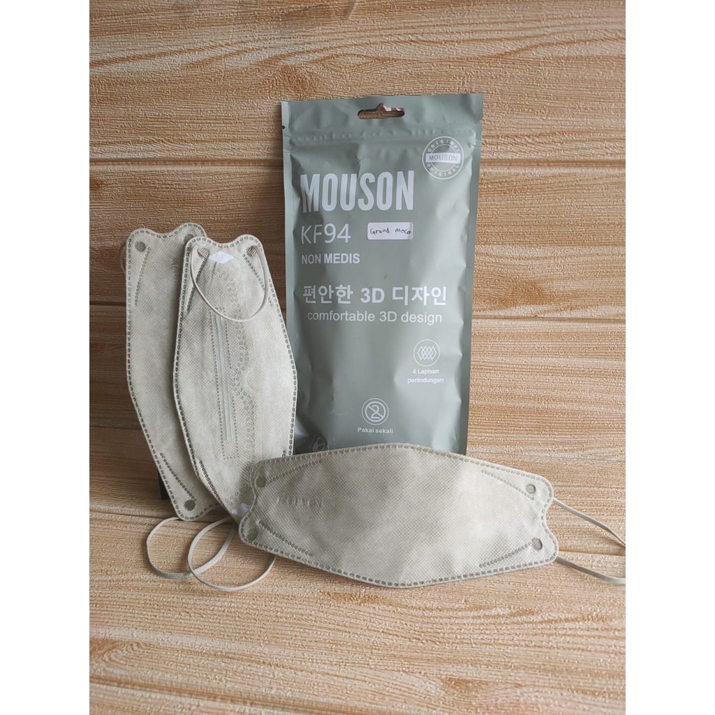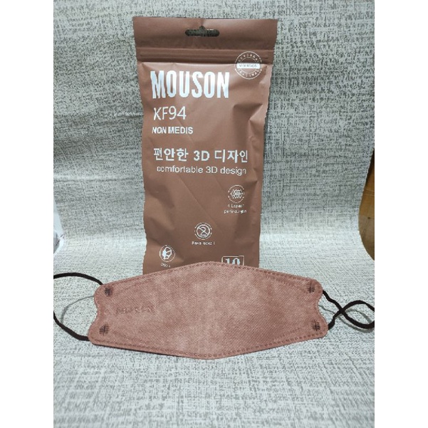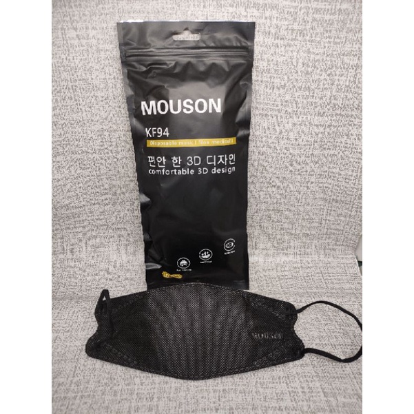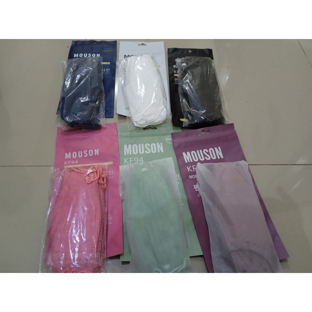 Masker Kf94 Mouson 4 Ply hitam putih warna tali senada