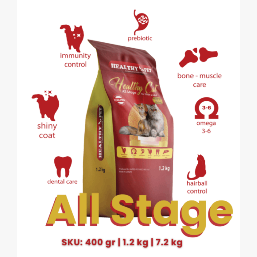 Healthy Pet Healthy Cat Gold All Stage Kitten Adult Repack 400gr - Makanan Kucing Healty Pet