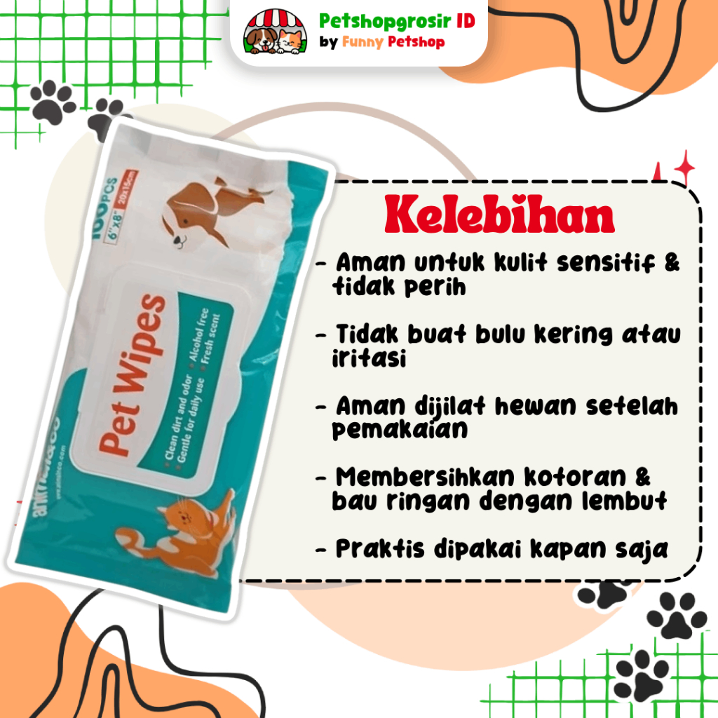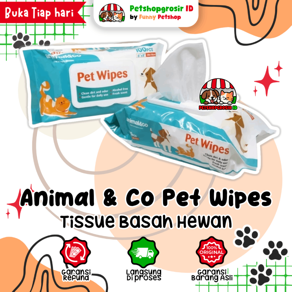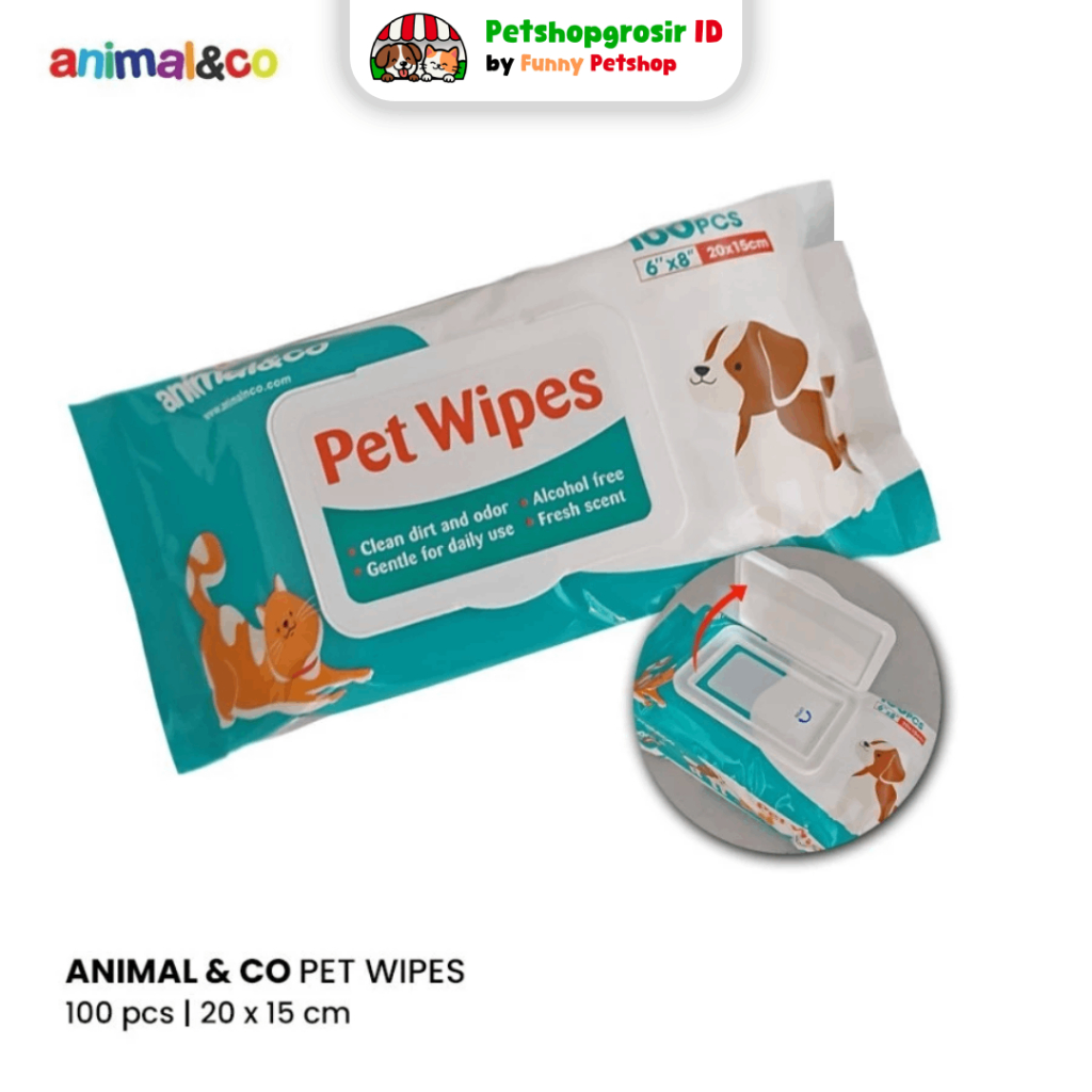 Animal Co Pet Wipes 100pcs (8"x6") TISSUE BASAH HEWAN - PET SOFT WET WIPES AnimalnCo Animal&Co