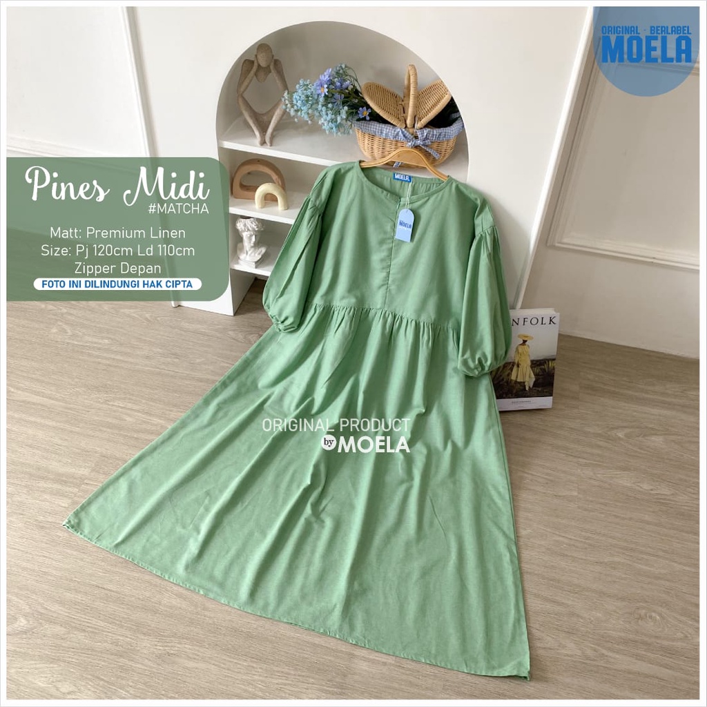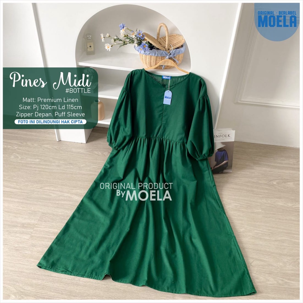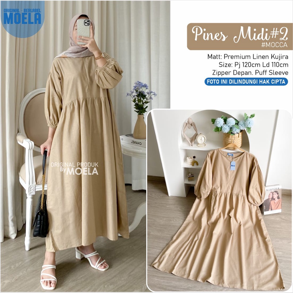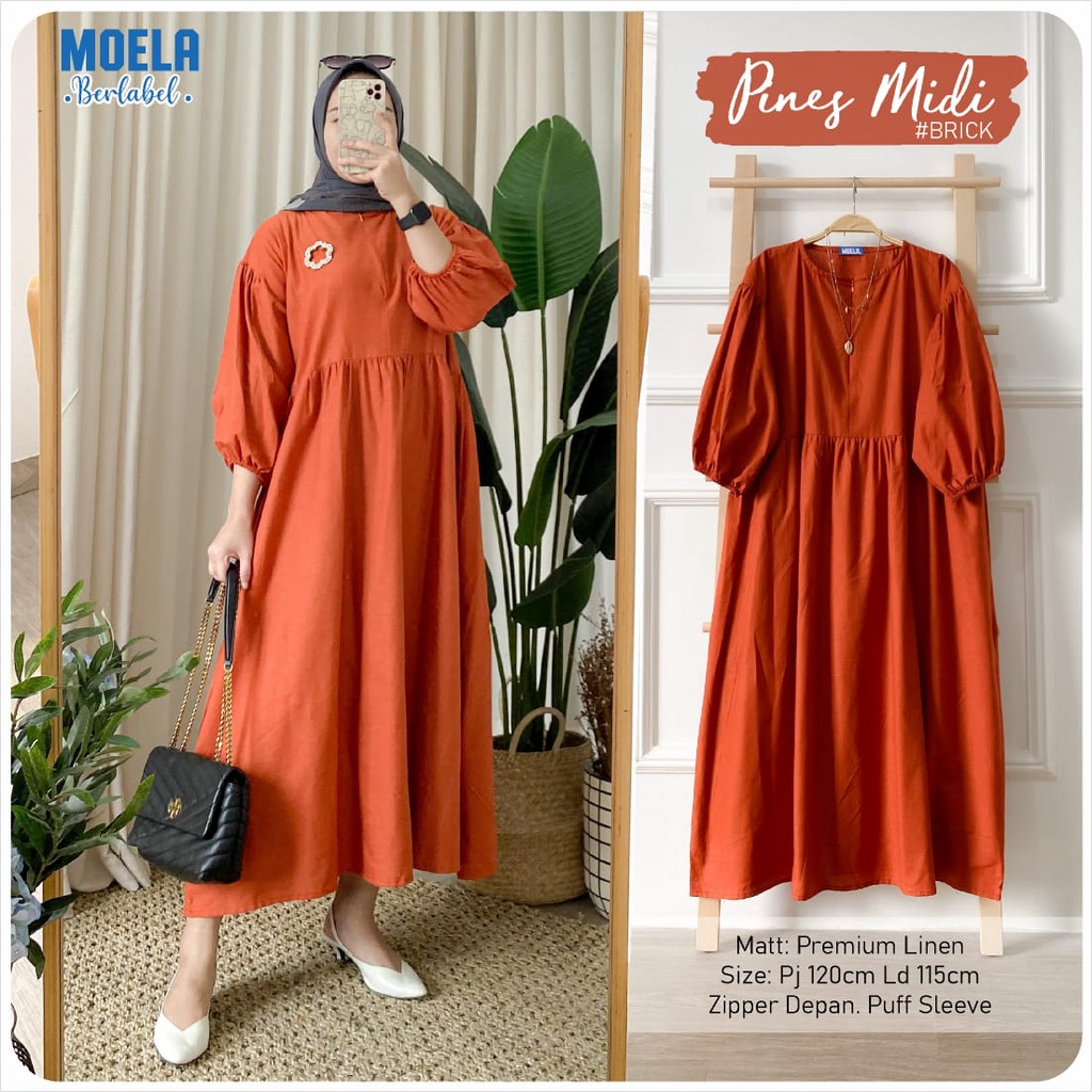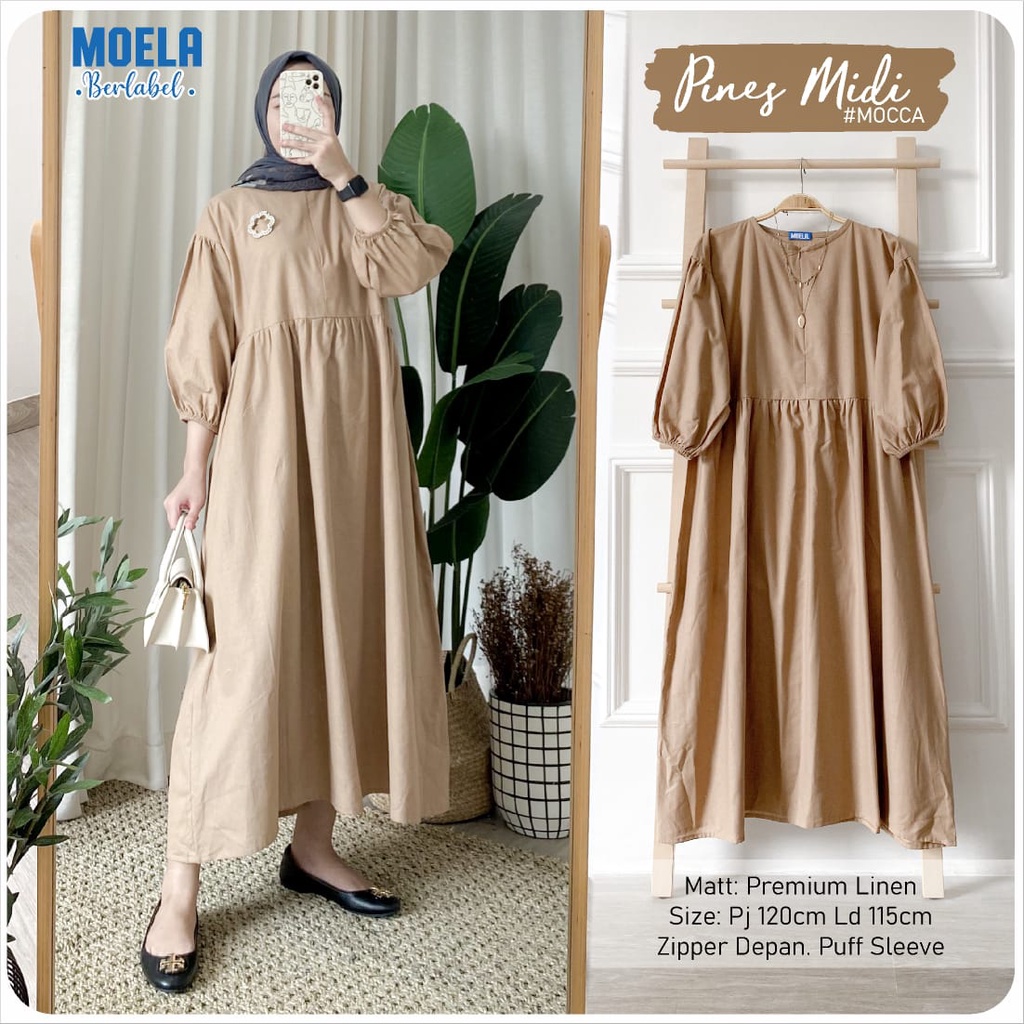 FASHION midi PINES ld 115cm dress by ORI MOELA PREMIUM LINEN polos gamis cewe MUSLIM dewasa