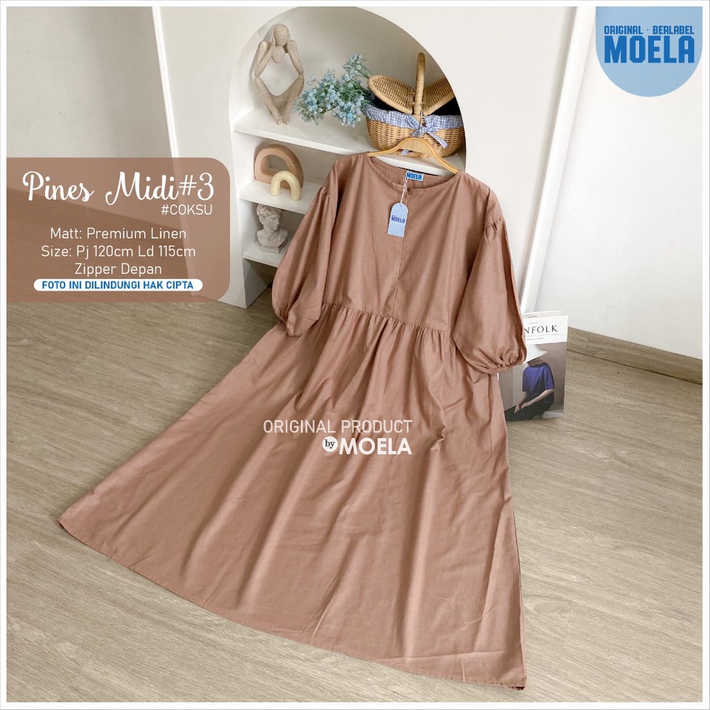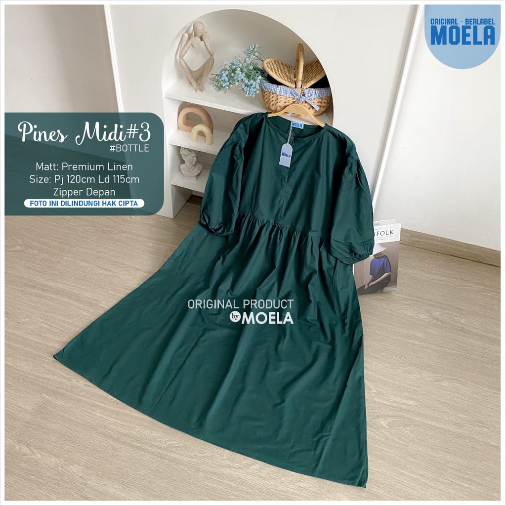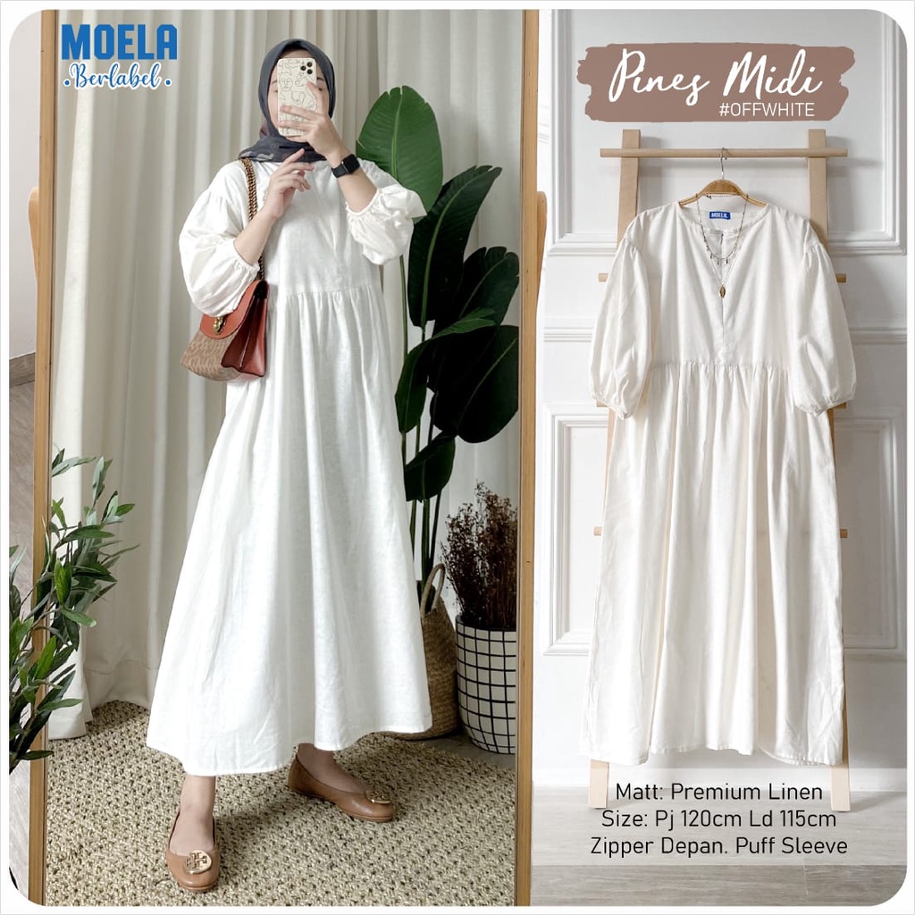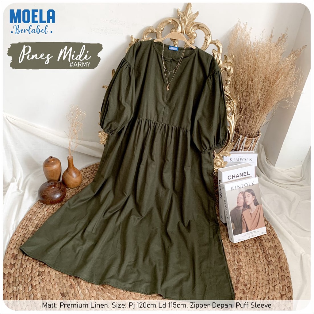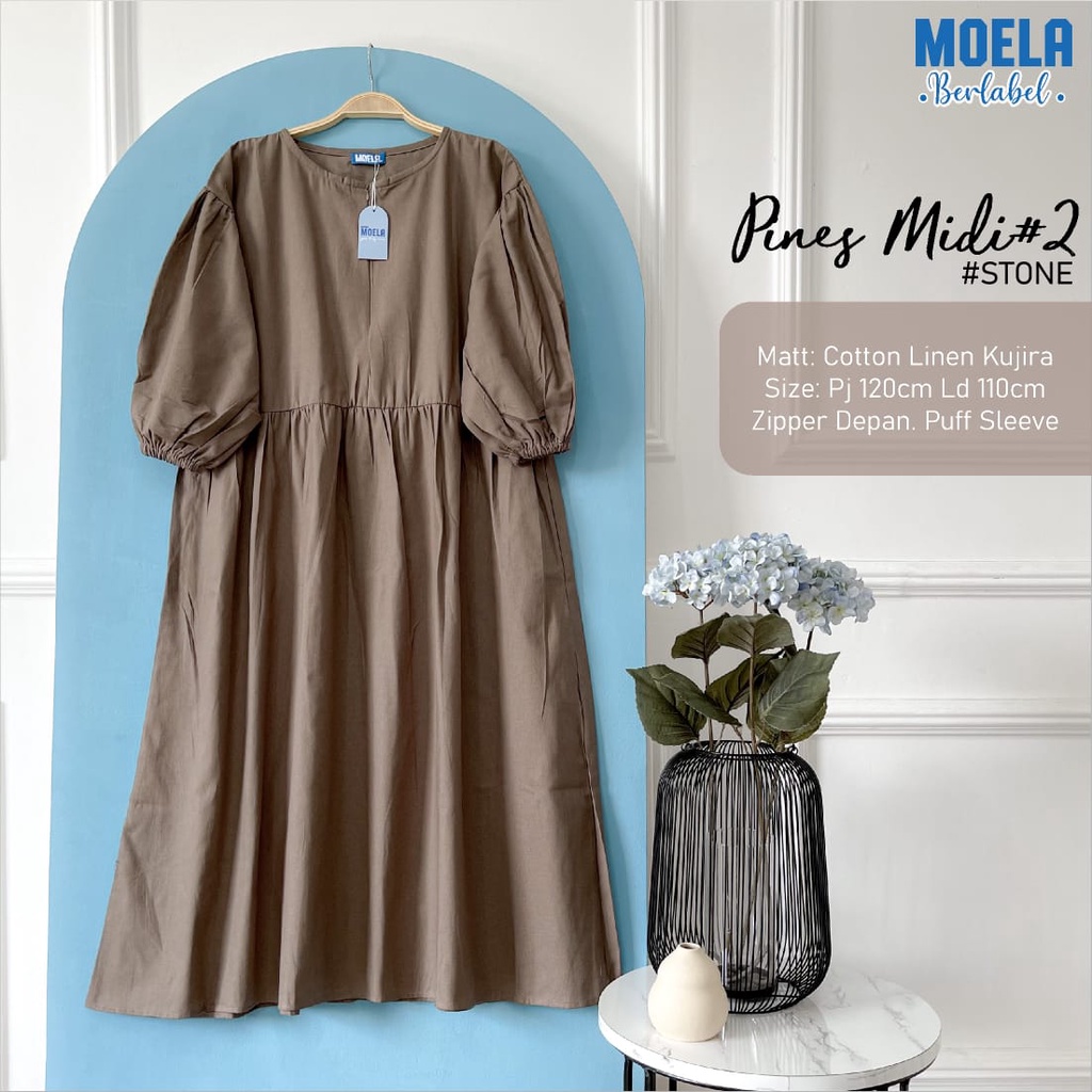 FASHION midi PINES ld 115cm dress by ORI MOELA PREMIUM LINEN polos gamis cewe MUSLIM dewasa