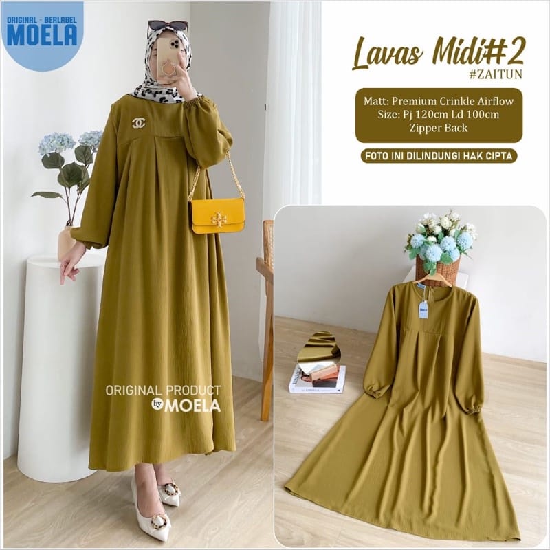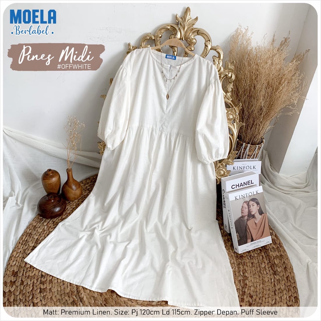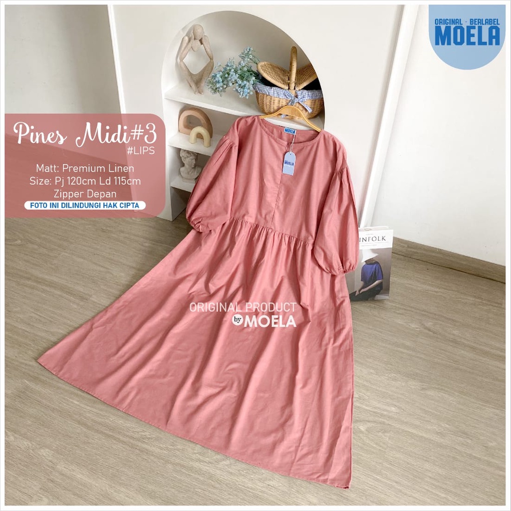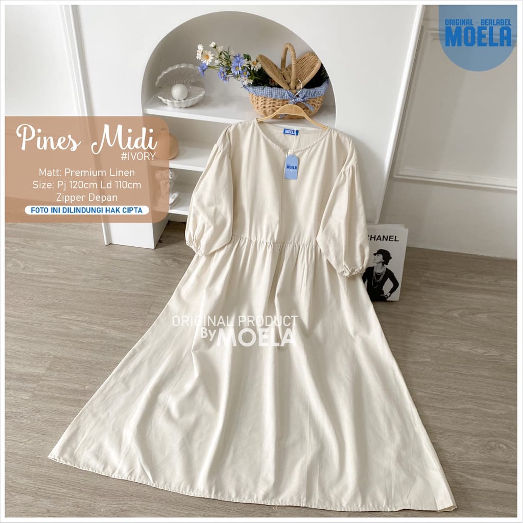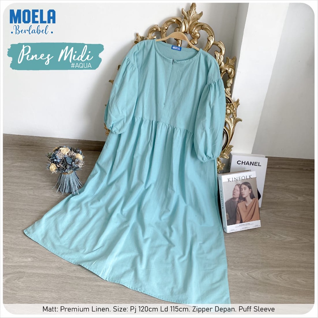 FASHION midi PINES ld 115cm dress by ORI MOELA PREMIUM LINEN polos gamis cewe MUSLIM dewasa
